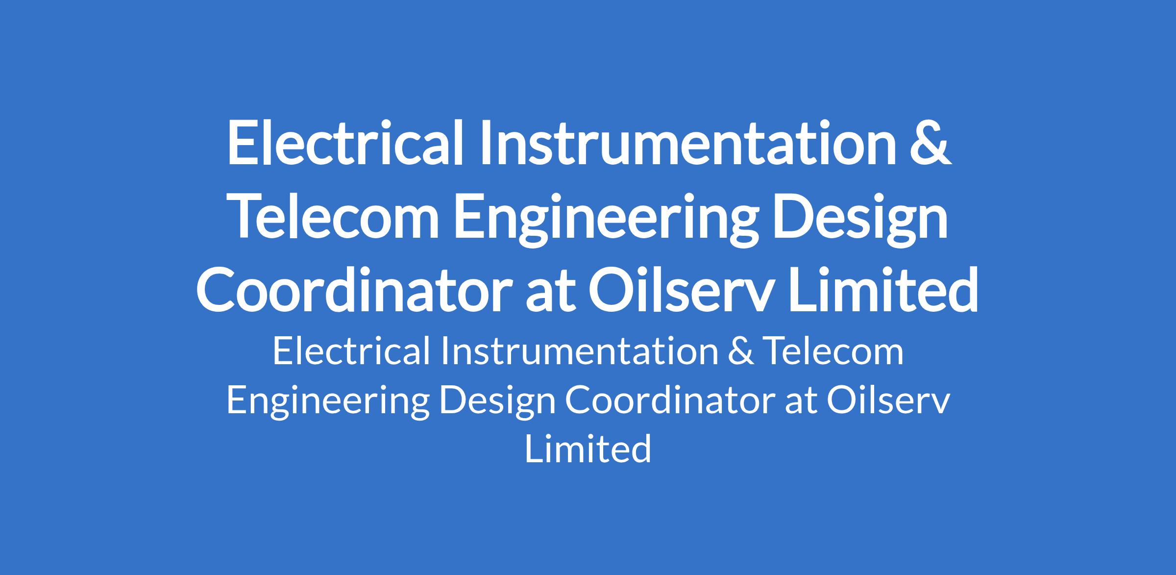 Oilserv Limited is recruiting to fill the position of: Electrical Instrumentation & Telecom Engineering Design Coordinator. The position is located in Rivers State. Interested candidates should possess a minimum of B.Eeng / Tech in Electrical / Electronics Engineering with a minimum of 10+ years of working experience in Electrical / Electronics design engineering and procurement support.
