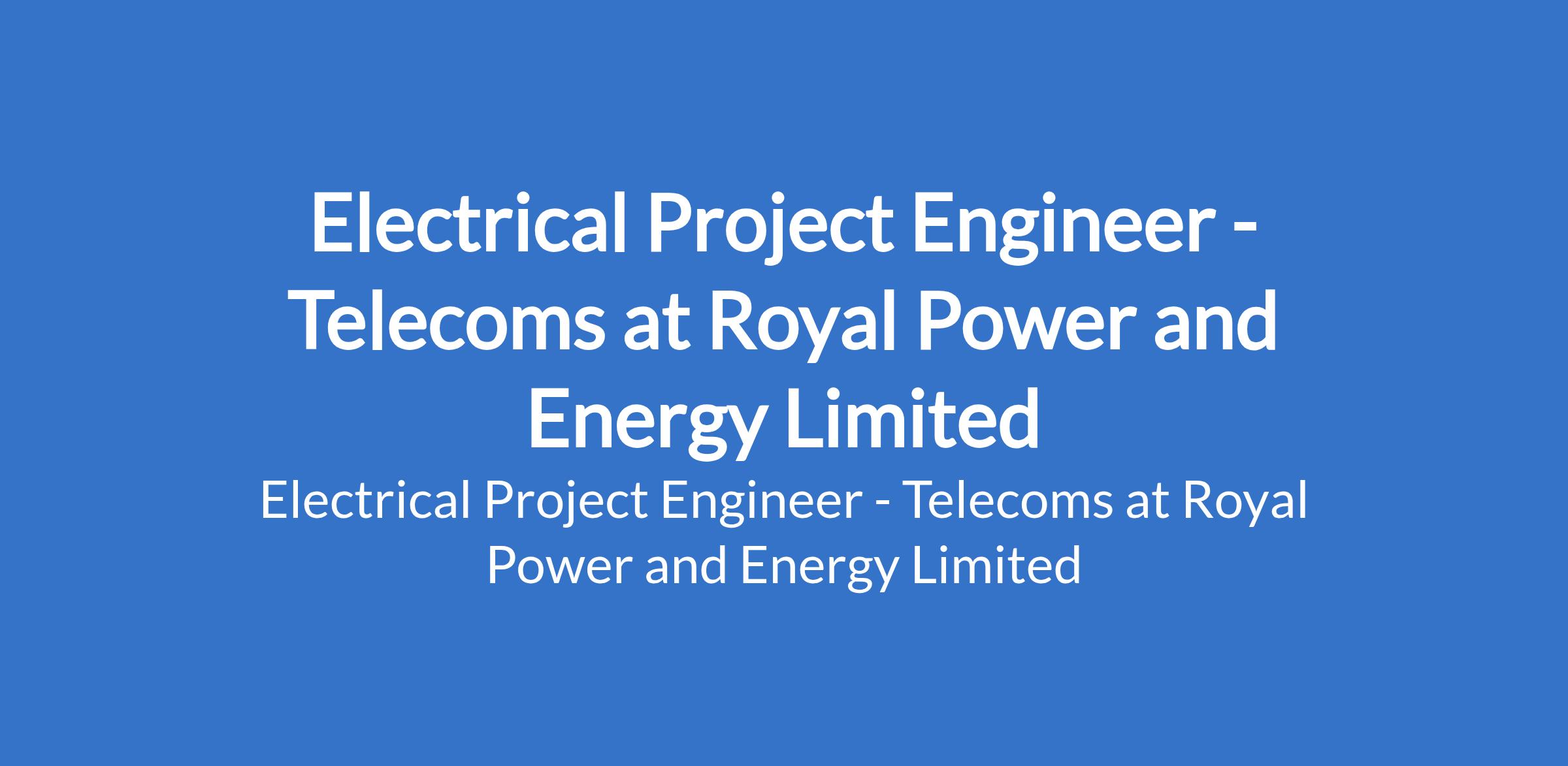 Royal Power and Energy Limited is recruiting to fill the position of: Electrical Project Engineer - Telecoms. The position is located in Victoria Island - Lagos State. Interested candidates should possess relevant qualifications with years of work experience.