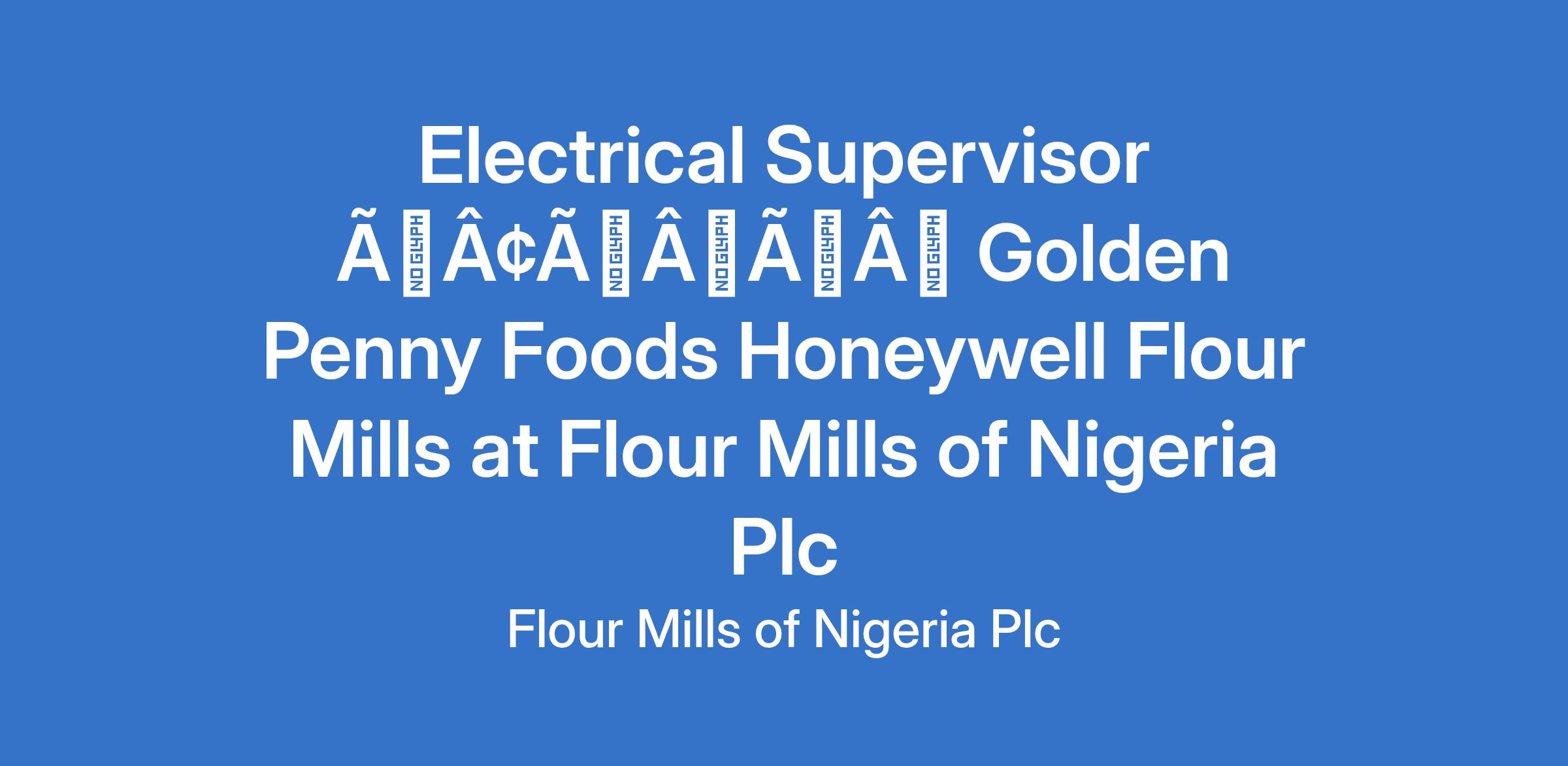 Electrical Supervisor âÃÂàGolden Penny Foods Honeywell Flour Mills at Flour Mills of Nigeria Plc
