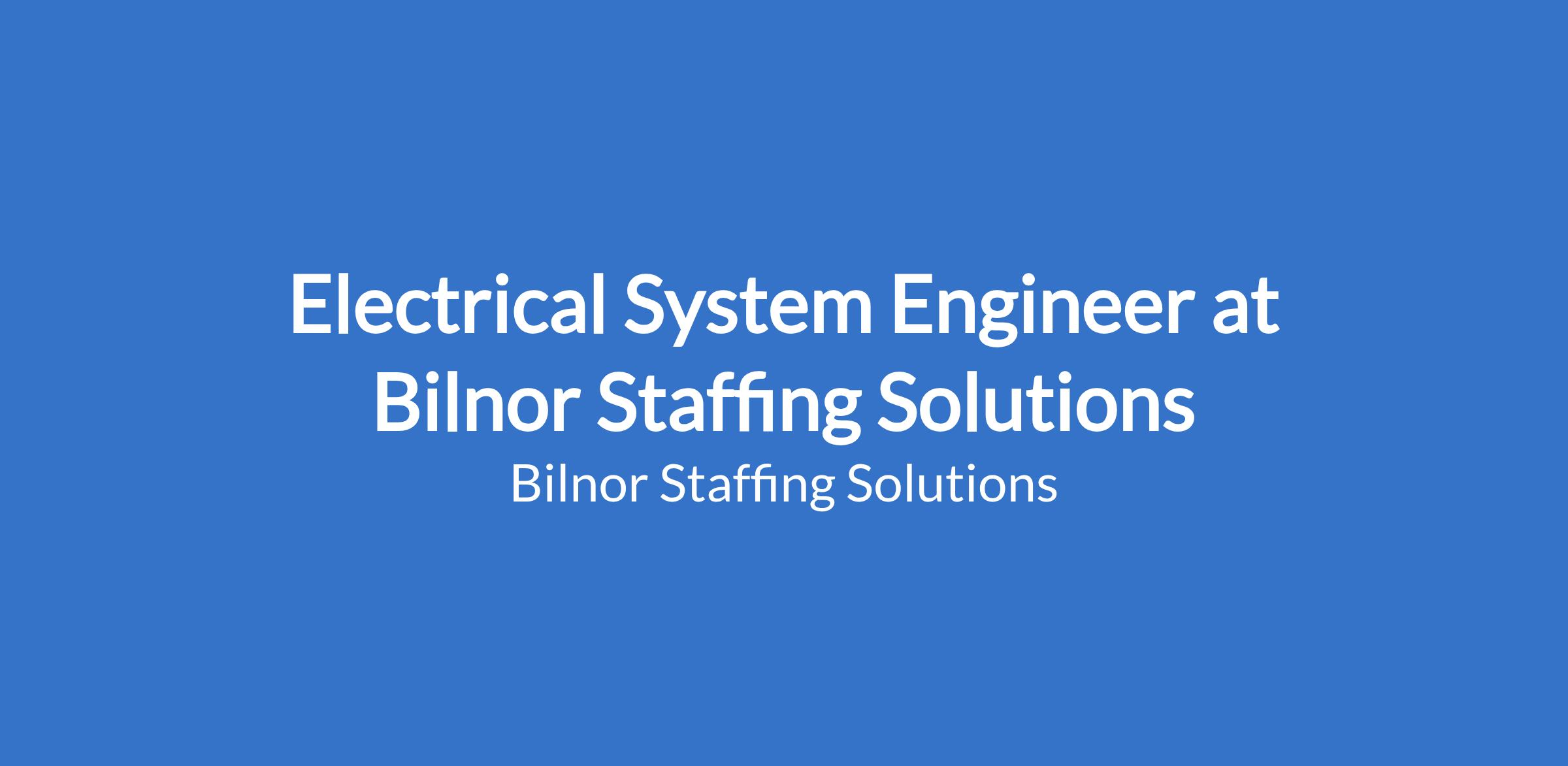 Bilnor Staffing Solutions' client in the engineering sector is looking for an Electrical System Engineer to join their team in Wadeville, Gauteng.