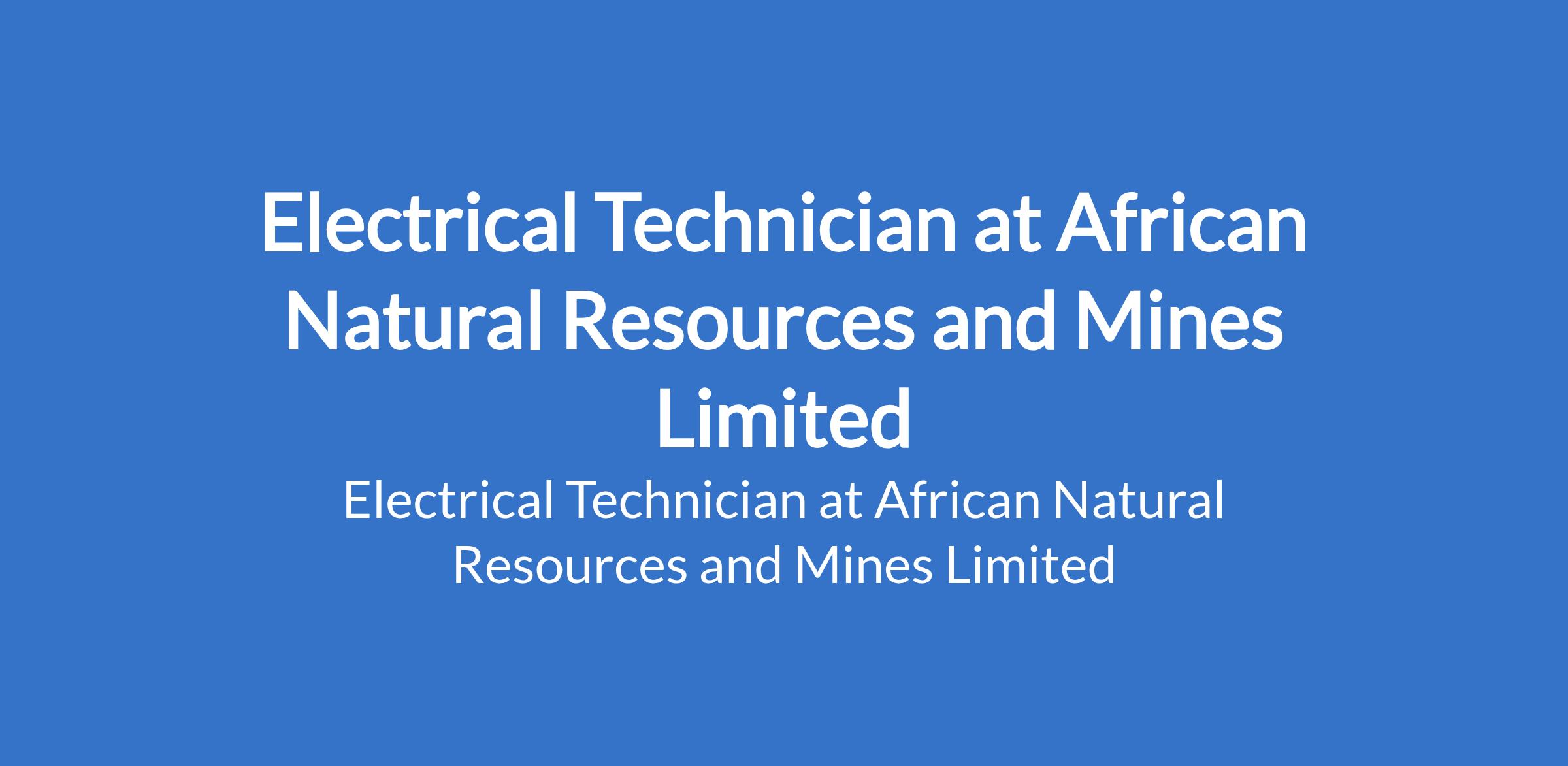 African Natural Resources and Mines Limited is recruiting to fill the position of: Electrical Technician. The position is located in Gujeni, Kaduna State. Interested candidates should possess a Technical Diploma or Trade Certificate in Electrical Engineering or Industrial Electrical Maintenance with 2 4 years of hands-on experience in electrical maintenance, preferably in a pellet plant or heavy industrial setting.