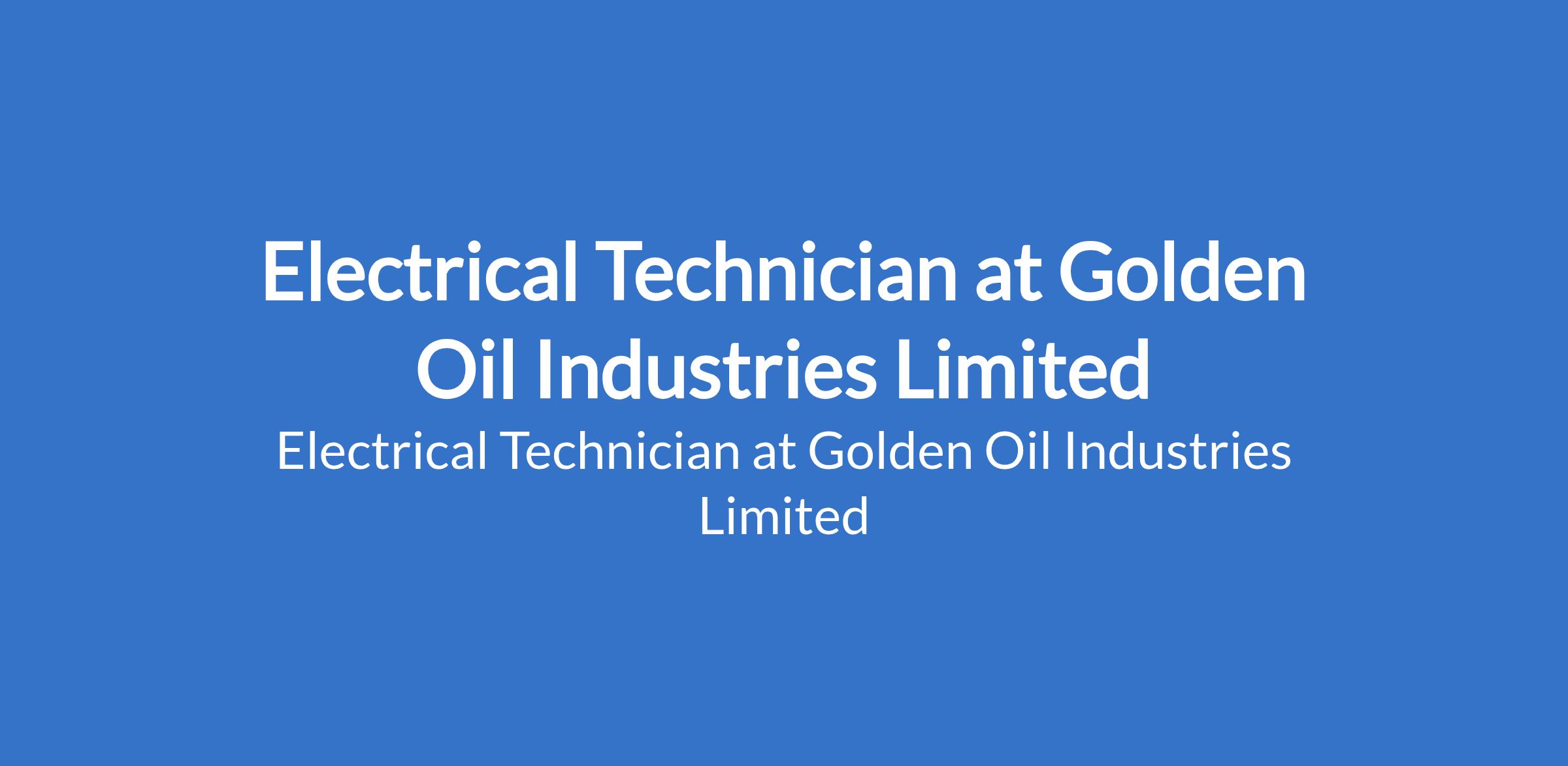 Golden Oil Industries Limited is recruiting to fill the position of: Electrical Technician. The position is located in Anambra State. Interested candidates should possess a Bachelor's Degree or Diploma in Electrical Electronics, Electrical Technology, or a related field with 3-5 years of experience operating refining equipment in the food processing industry, specifically in vegetable oil processing.