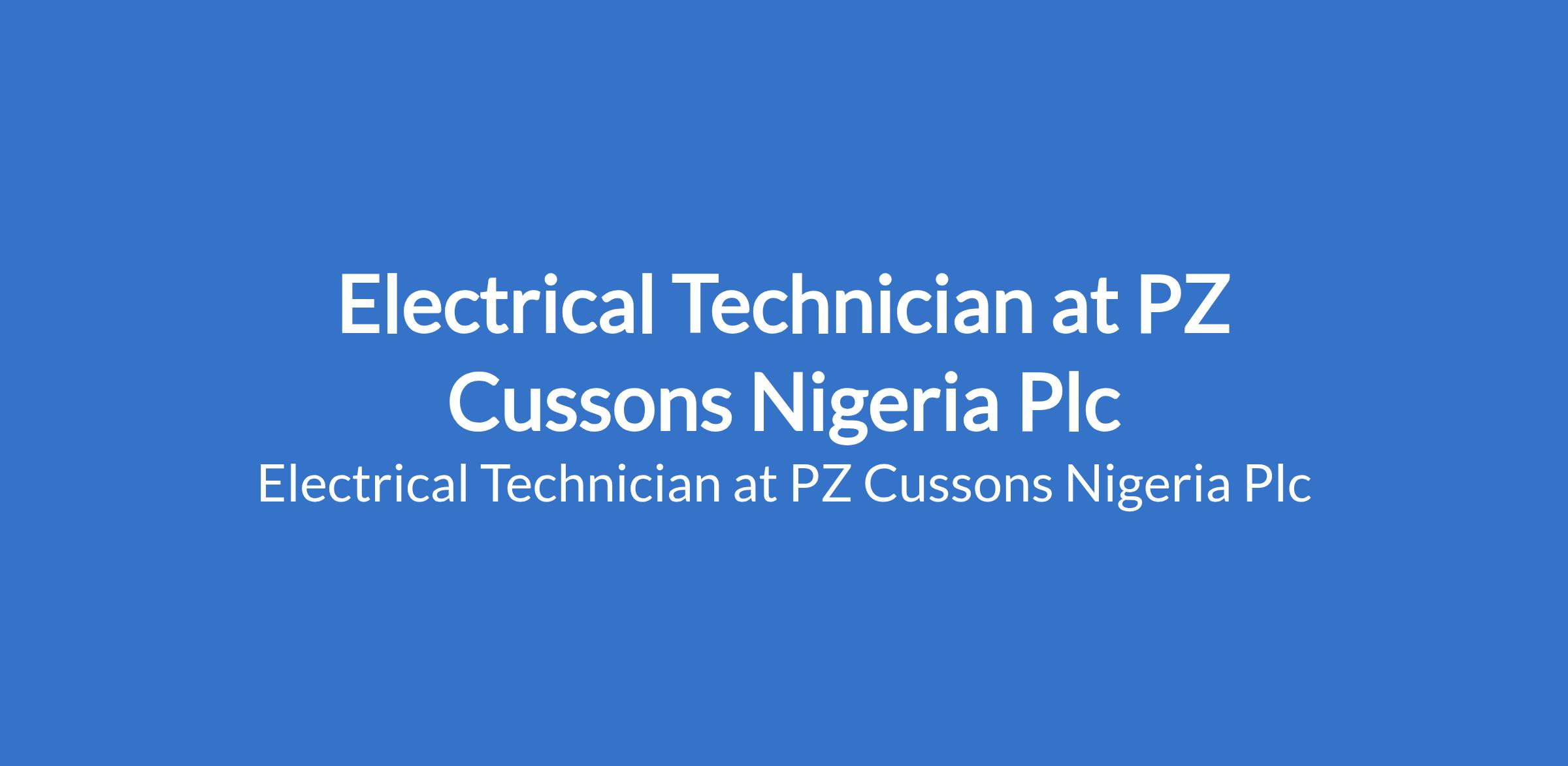 PZ Cussons Nigeria Plc is recruiting to fill the position of: Factory Electrical Technician. The position is located in Aba, Abia State. Interested candidates should possess an OND / HND / B.Sc in Electrical / Electronics Engineering with a minimum of 3 years of work experience in a similar position.
