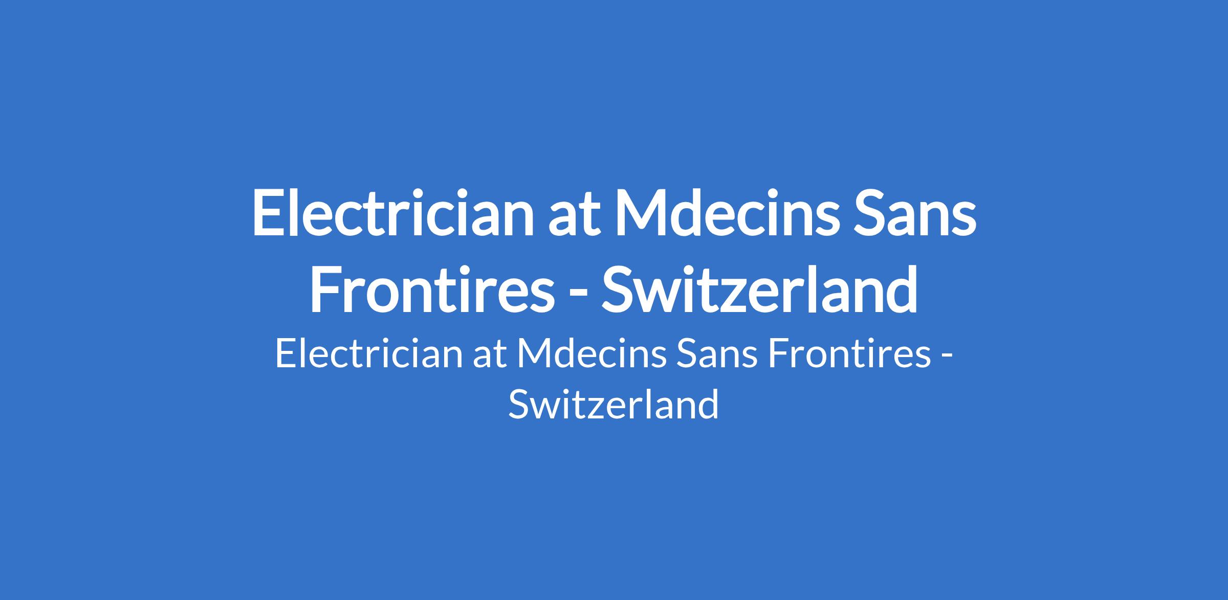 Mdecins Sans Frontires - Switzerland is recruiting to fill the position of: Electrician. The position is located in Abuja (FCT). essential Electrician Diploma or recognized formal training with a minimum of 2 years of previous working experience as an electrician, Solar system Technician required.