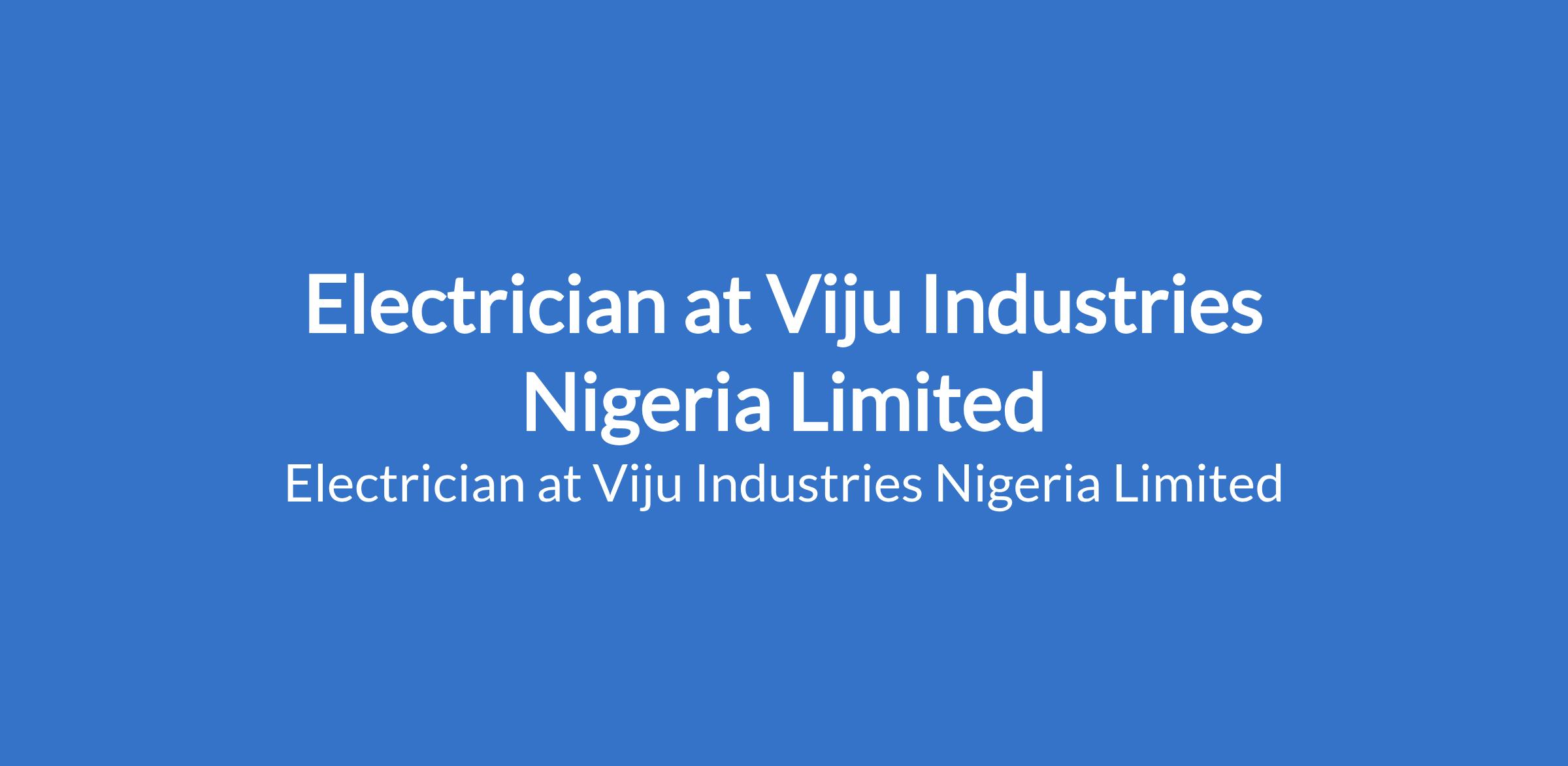 Viju Industries Nigeria Limited is recruiting to fill the position of: Electrician. The position is located in Igbesa, Ogun State. Salary: N100,000 - N300,000 monthly. Interested candidates should possess relevant qualifications with more than five years of relevant work experience.