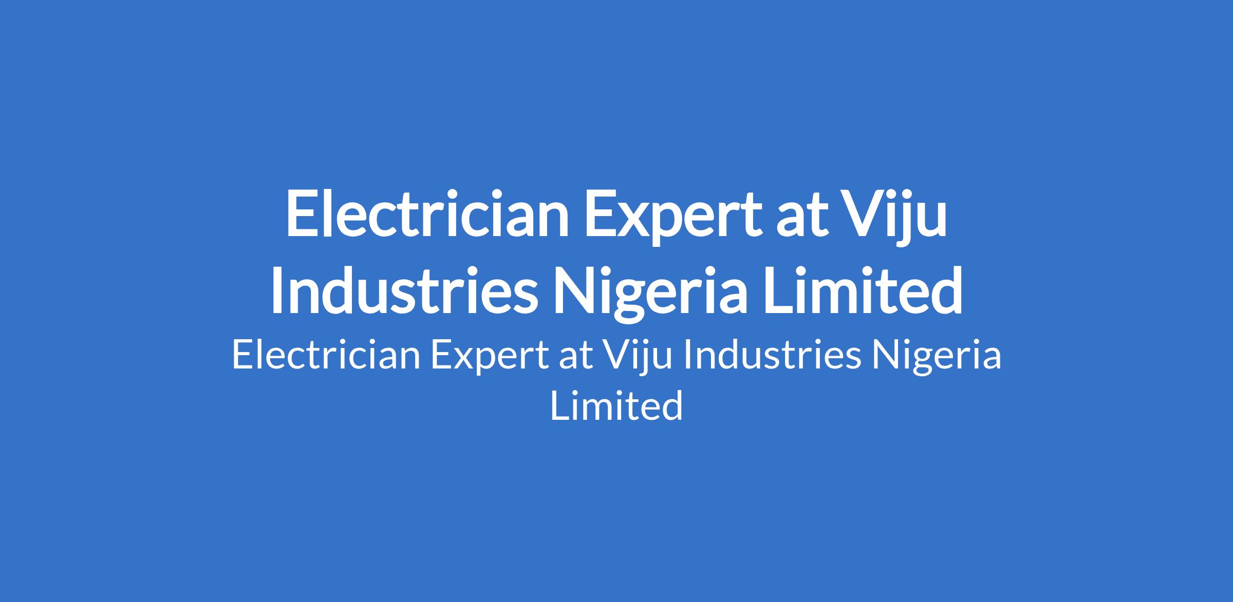 Viju Industries Nigeria Limited is recruiting to fill the position of: Electrician Expert. The position is located in Ikeja, Lagos State. Salary: N300,000 - N600,000 per month. Interested candidates should possess relevant qualifications with more than five years of relevant work experience.
