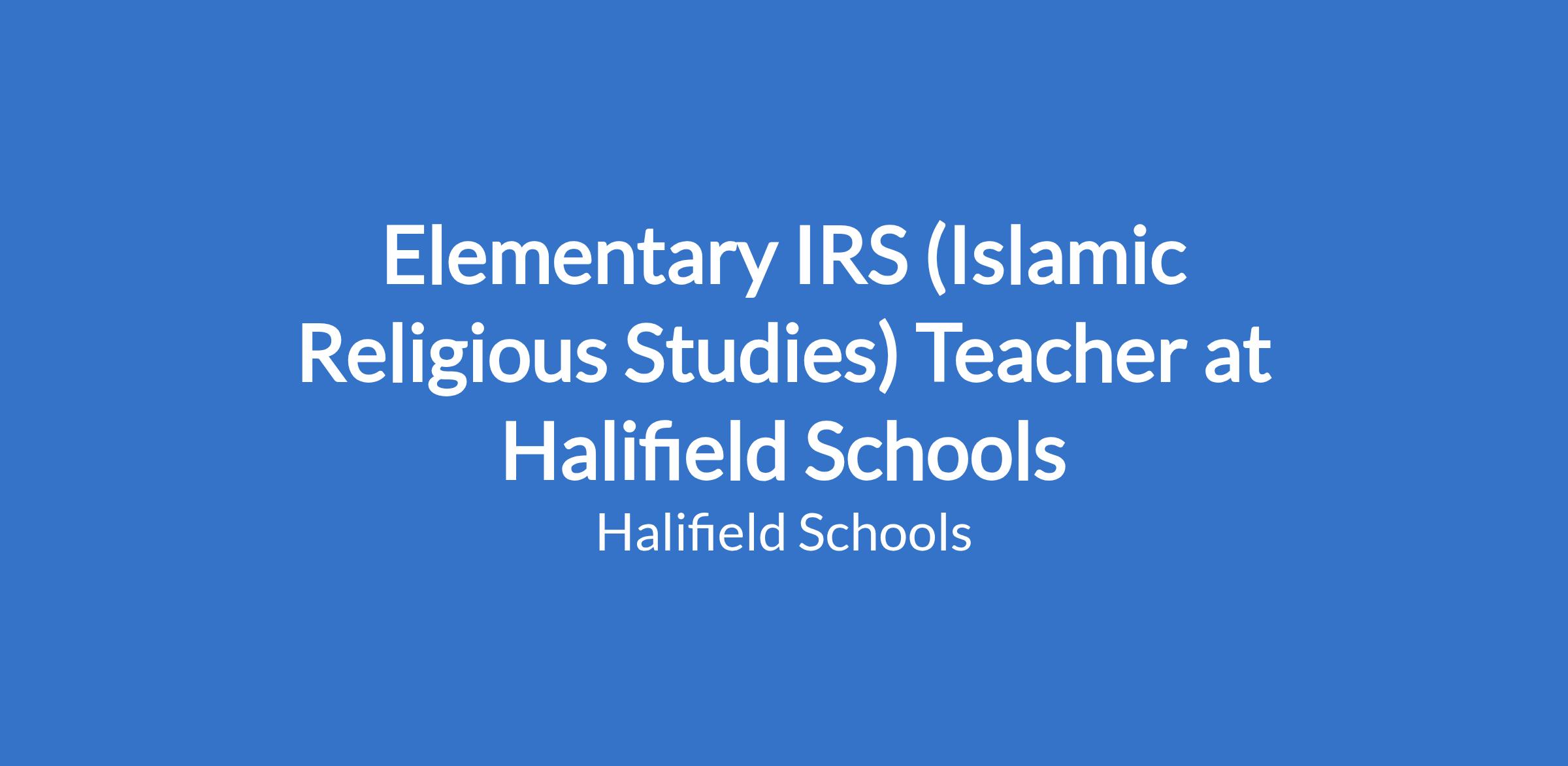 Elementary IRS (Islamic Religious Studies) Teacher at Halifield Schools