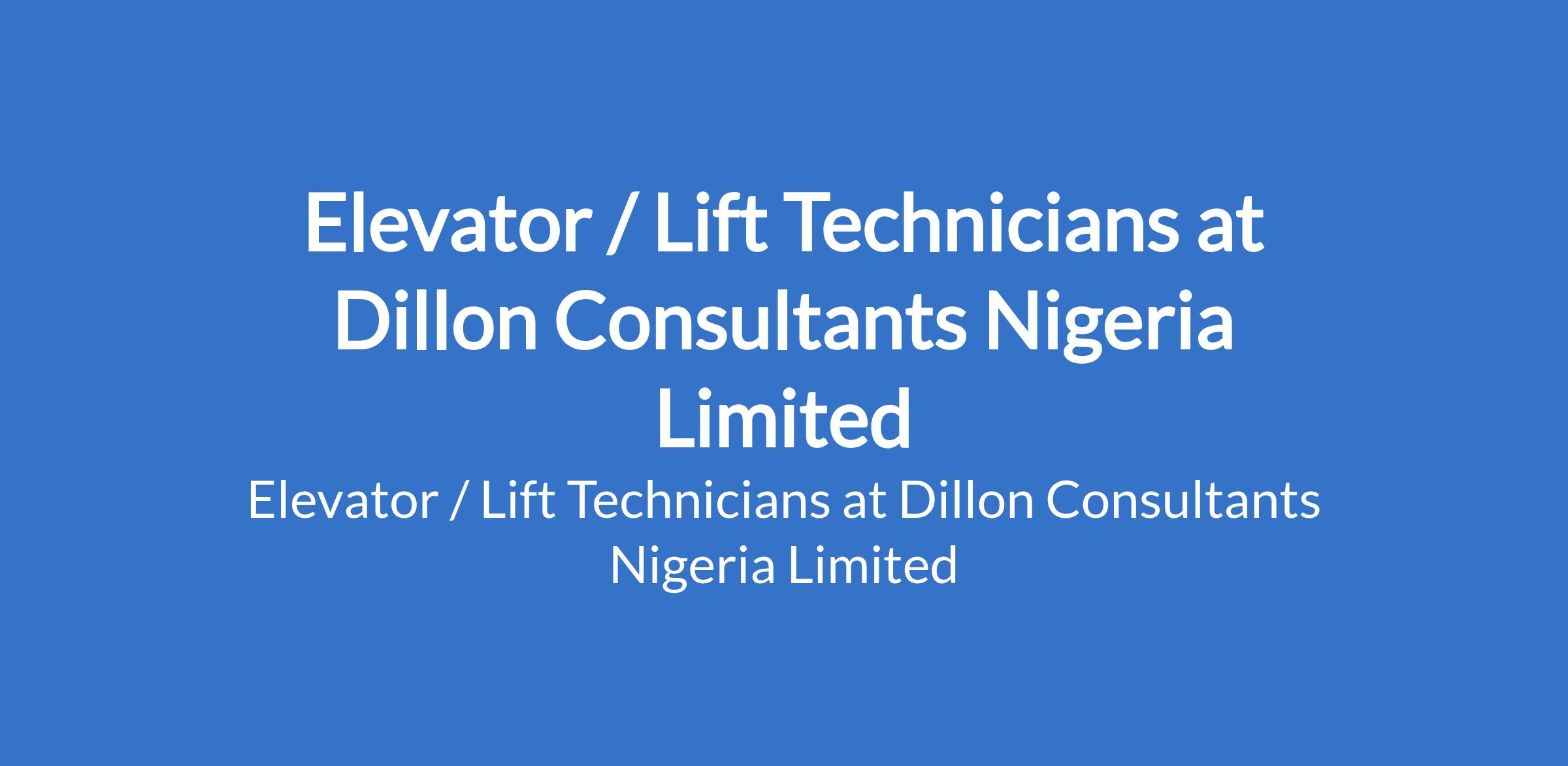Dillon Consultants Nigeria Limited is recruiting to fill the position of: Elevator / Lift Technician. Interested candidates should possess relevant qualifications with experience.