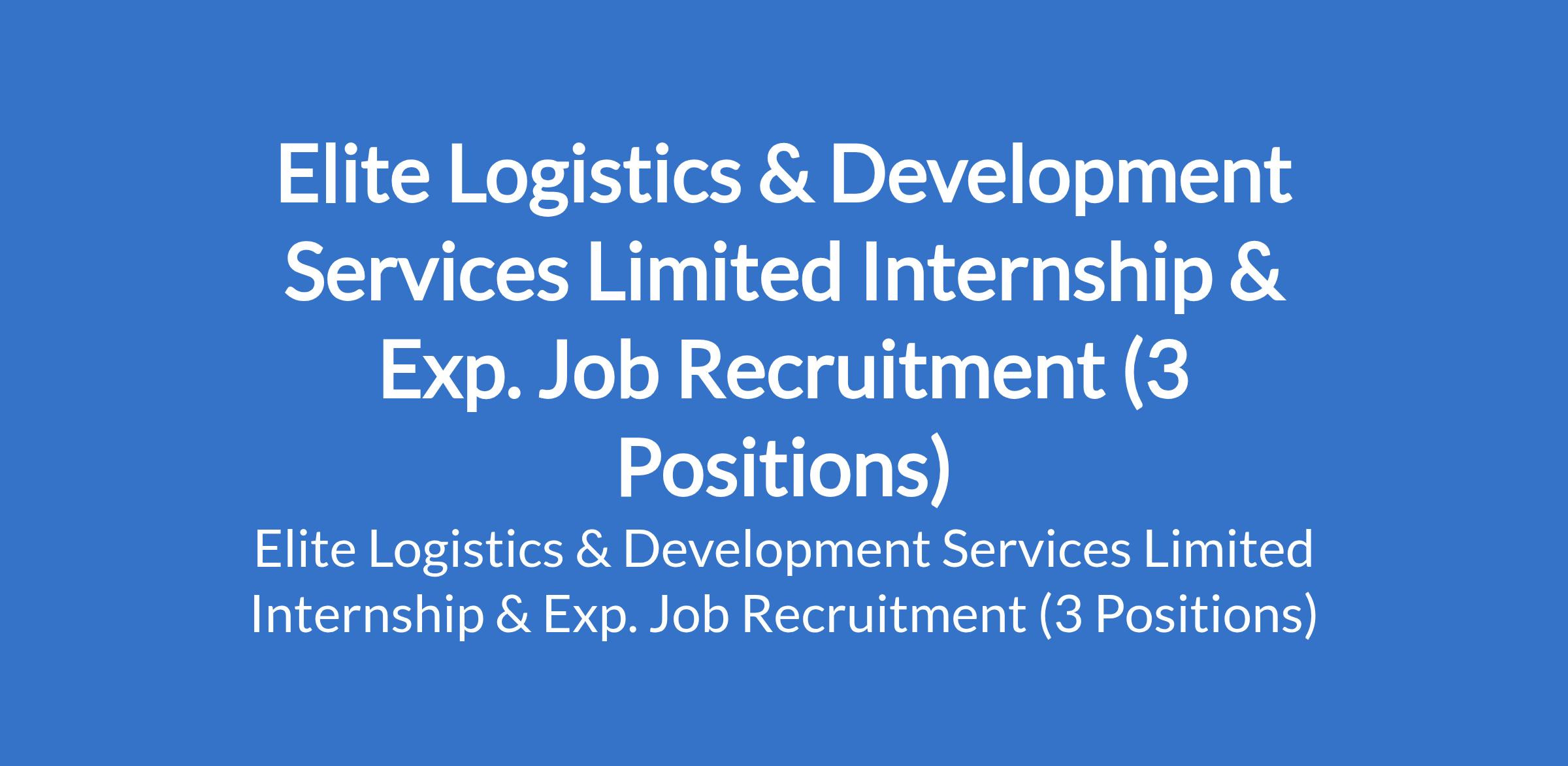 Elite Logistics & Development Services Limited Internship & Exp. Job Recruitment (3 Positions)