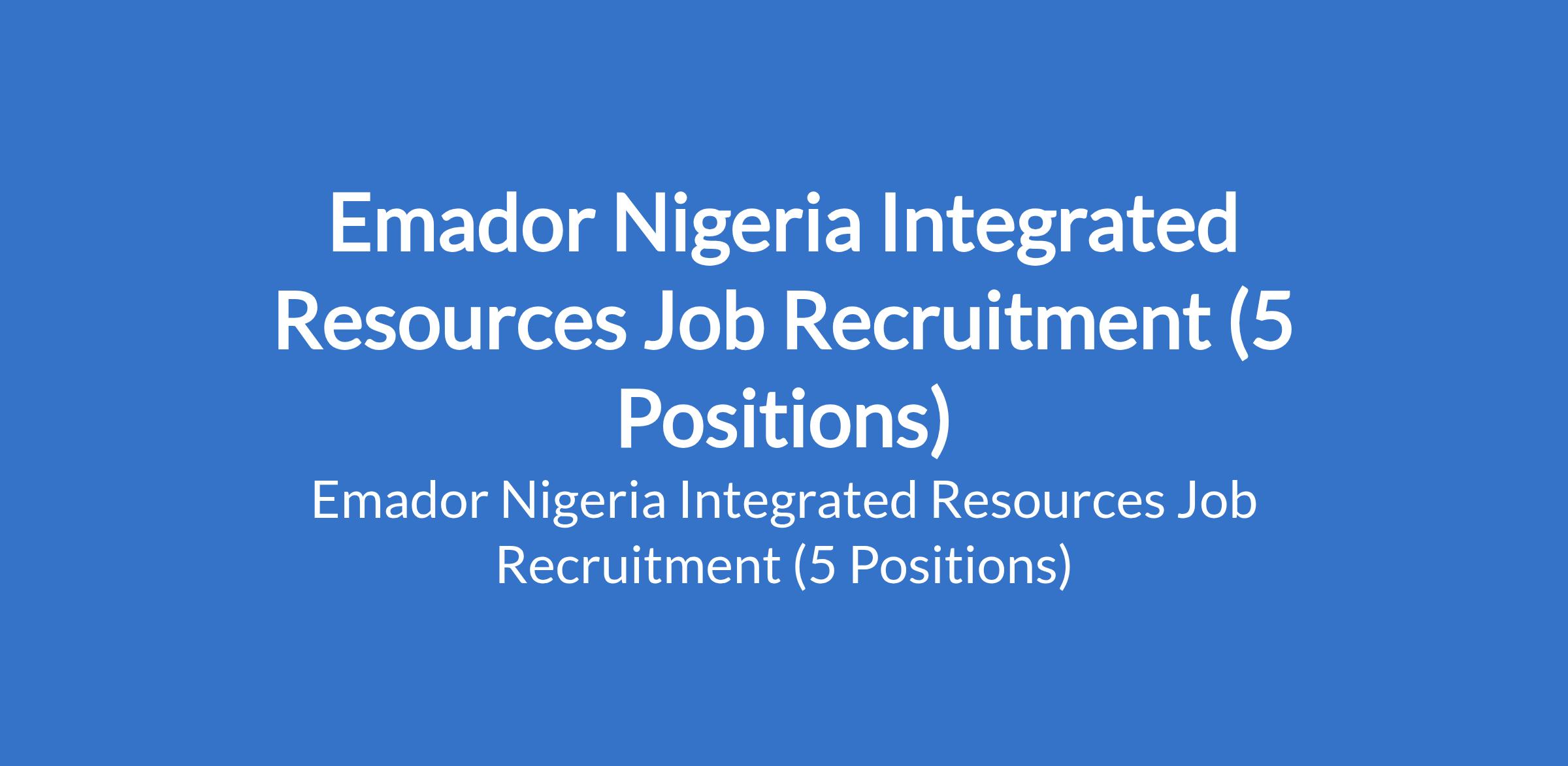 Emador Nigeria Integrated Resources Job Recruitment (5 Positions)
