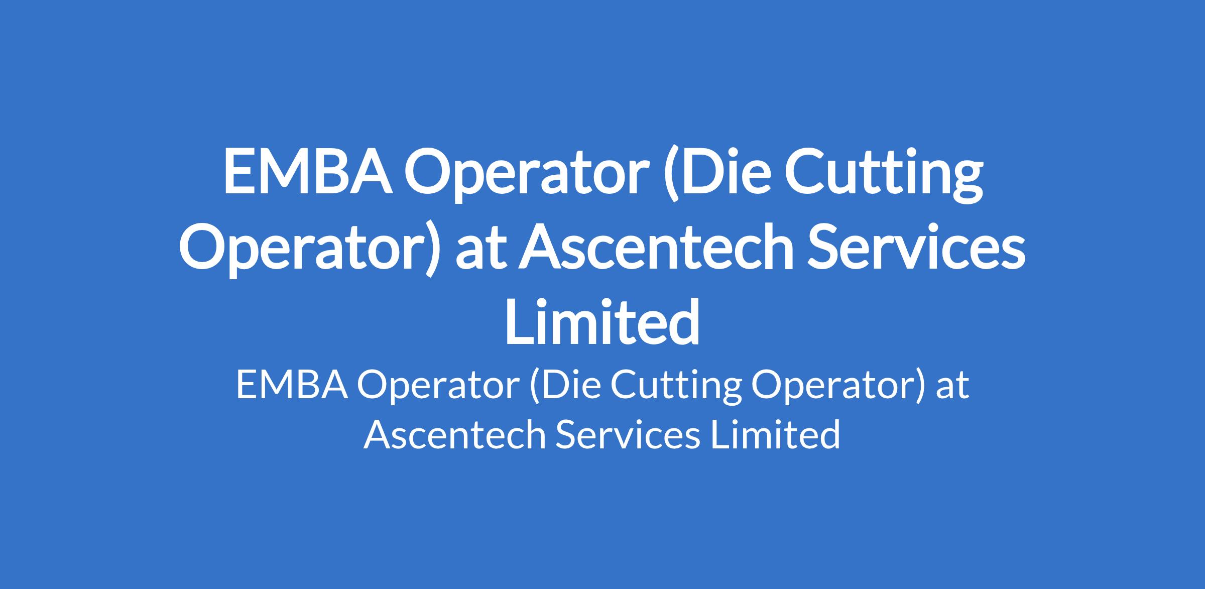 Ascentech Services Limited is recruiting to fill the position of: EMBA Operator (Die Cutting Operator). The position is located in Ogun State. Salary: N200,000 - N250,000 monthly. Interested candidates should possess a Bachelor's Degree or HND with a minimum of 5 years experience as a Die Cutting Operator.