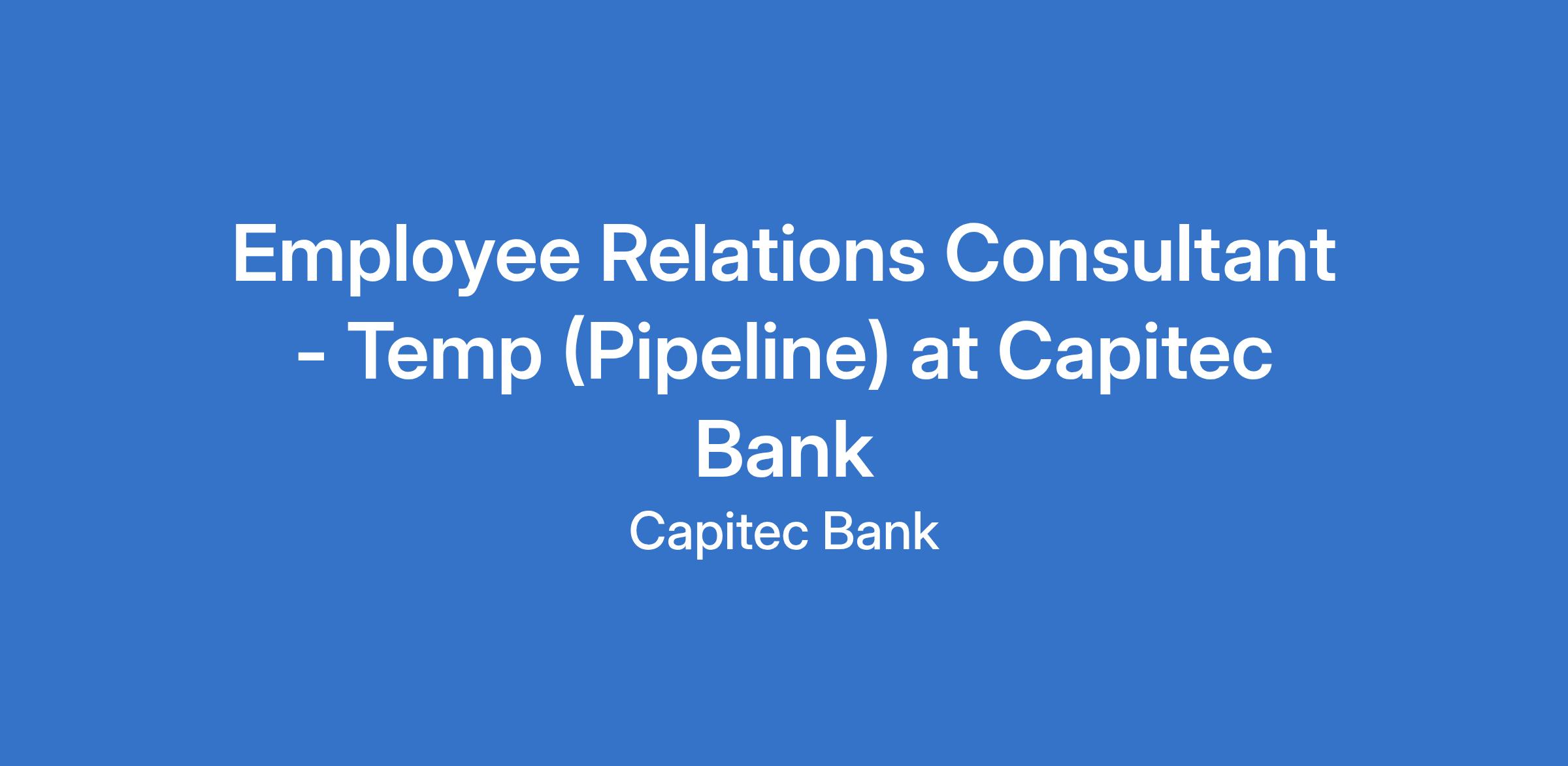 Employee Relations Consultant - Temp (Pipeline) at Capitec Bank