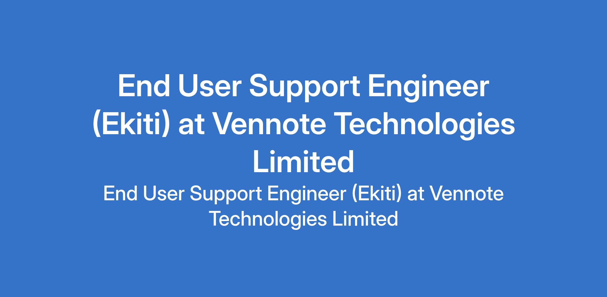 Vennote Technologies Limited is recruiting to fill the position of: End User Support Engineer. The position is located in Ekiti State. Interested candidates should possess a B.Sc in Computer Science, Electrical Engineering or related field with 3 years + experience in IT support and troubleshooting.