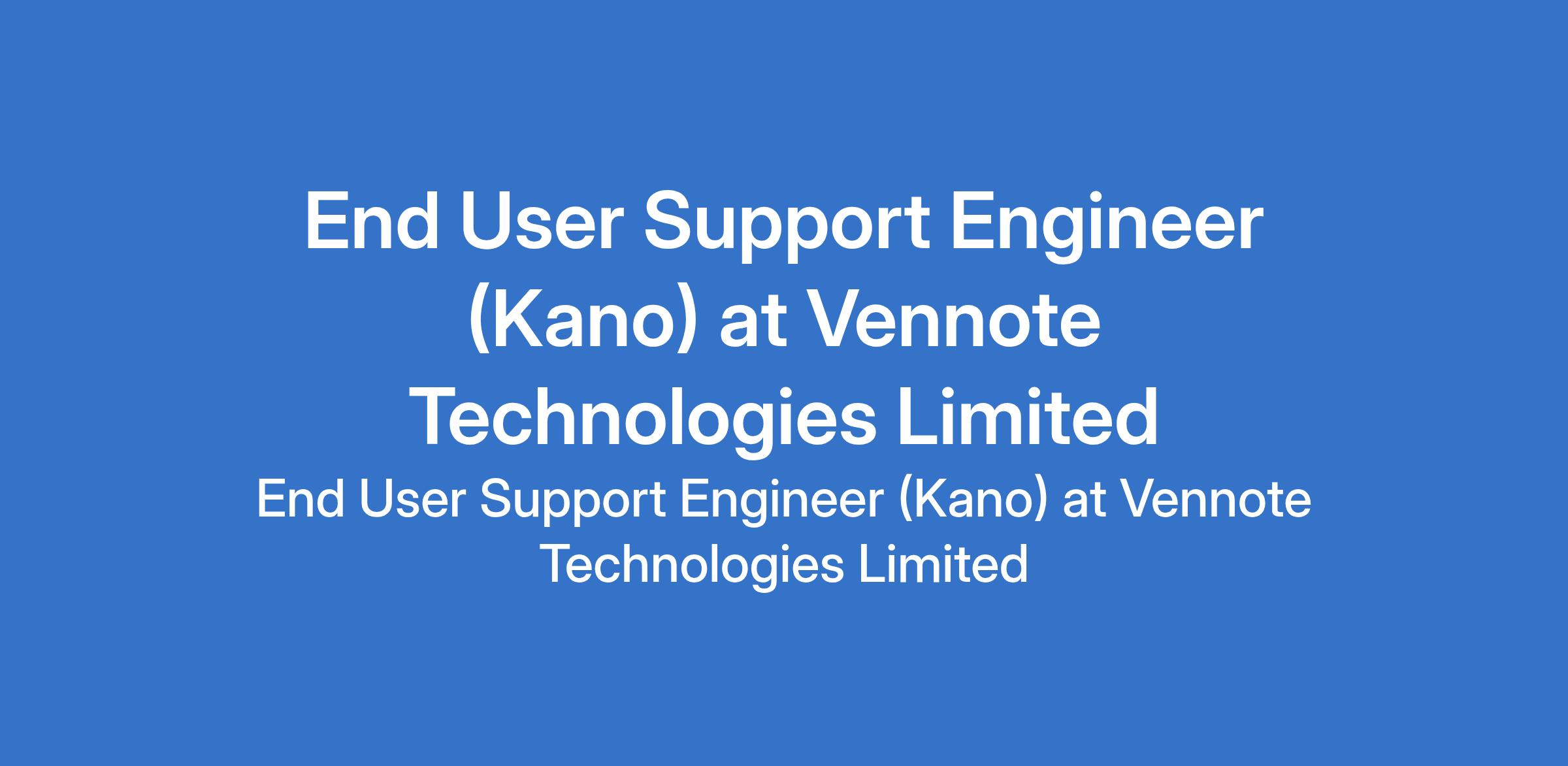 Vennote Technologies Limited is recruiting to fill the position of: End User Support Engineer. The position is located in Kano State. Interested candidates should possess a B.Sc in Computer Science, Electrical Engineering or related field with 3 years + experience in IT support and troubleshooting.