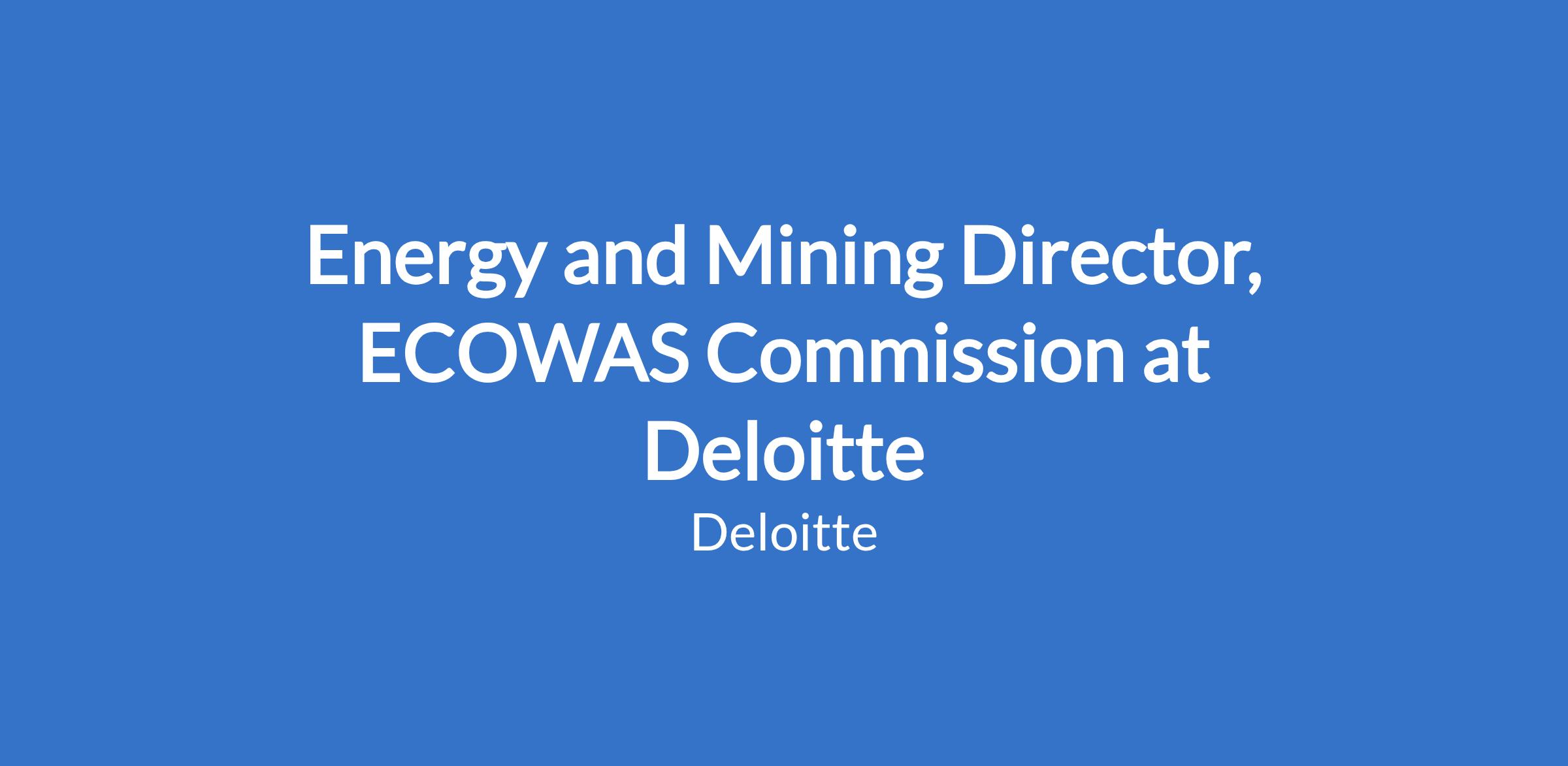 Energy and Mining Director, ECOWAS Commission at Deloitte
