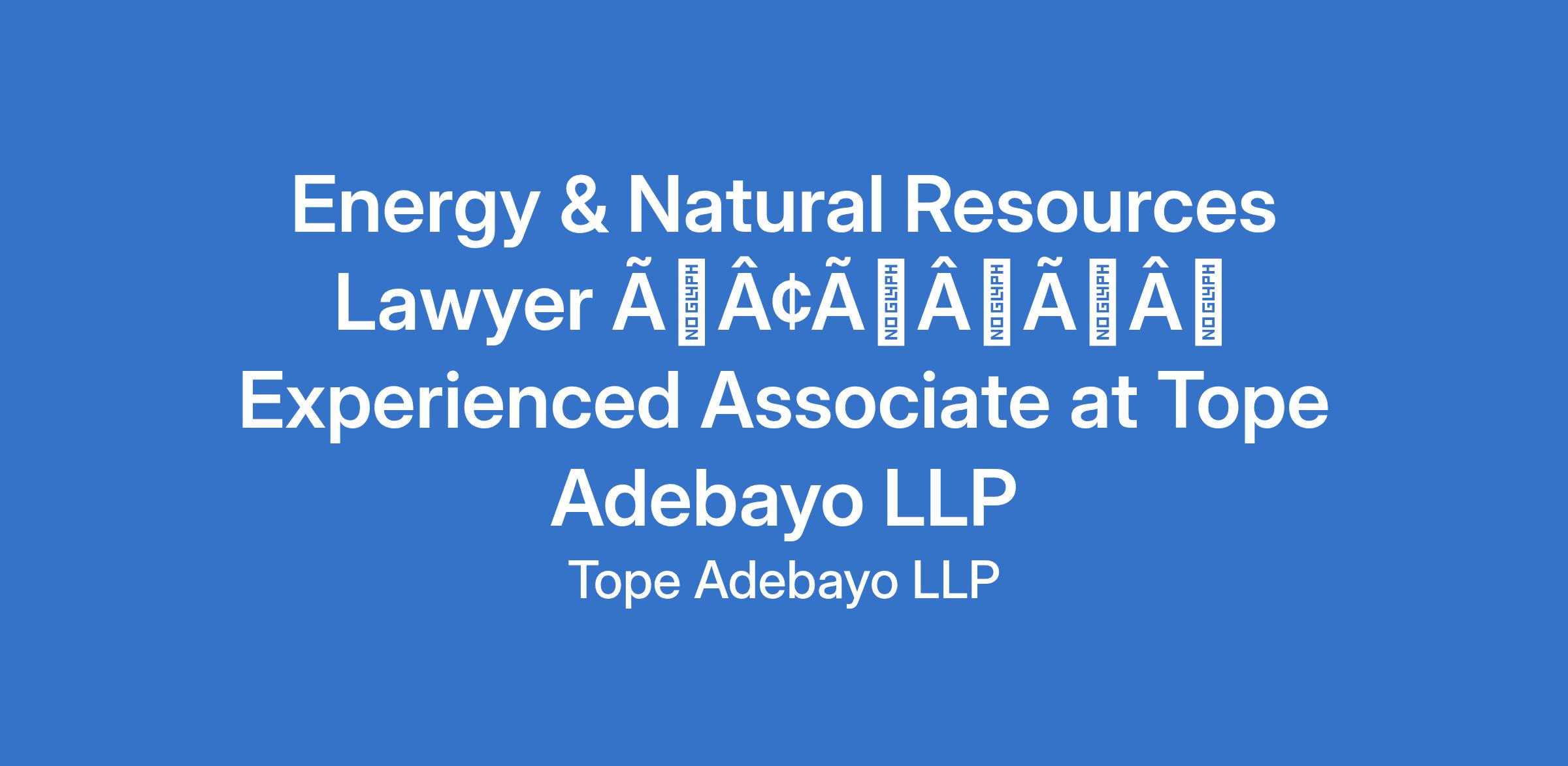 Energy & Natural Resources Lawyer âÃÂàExperienced Associate at Tope Adebayo LLP