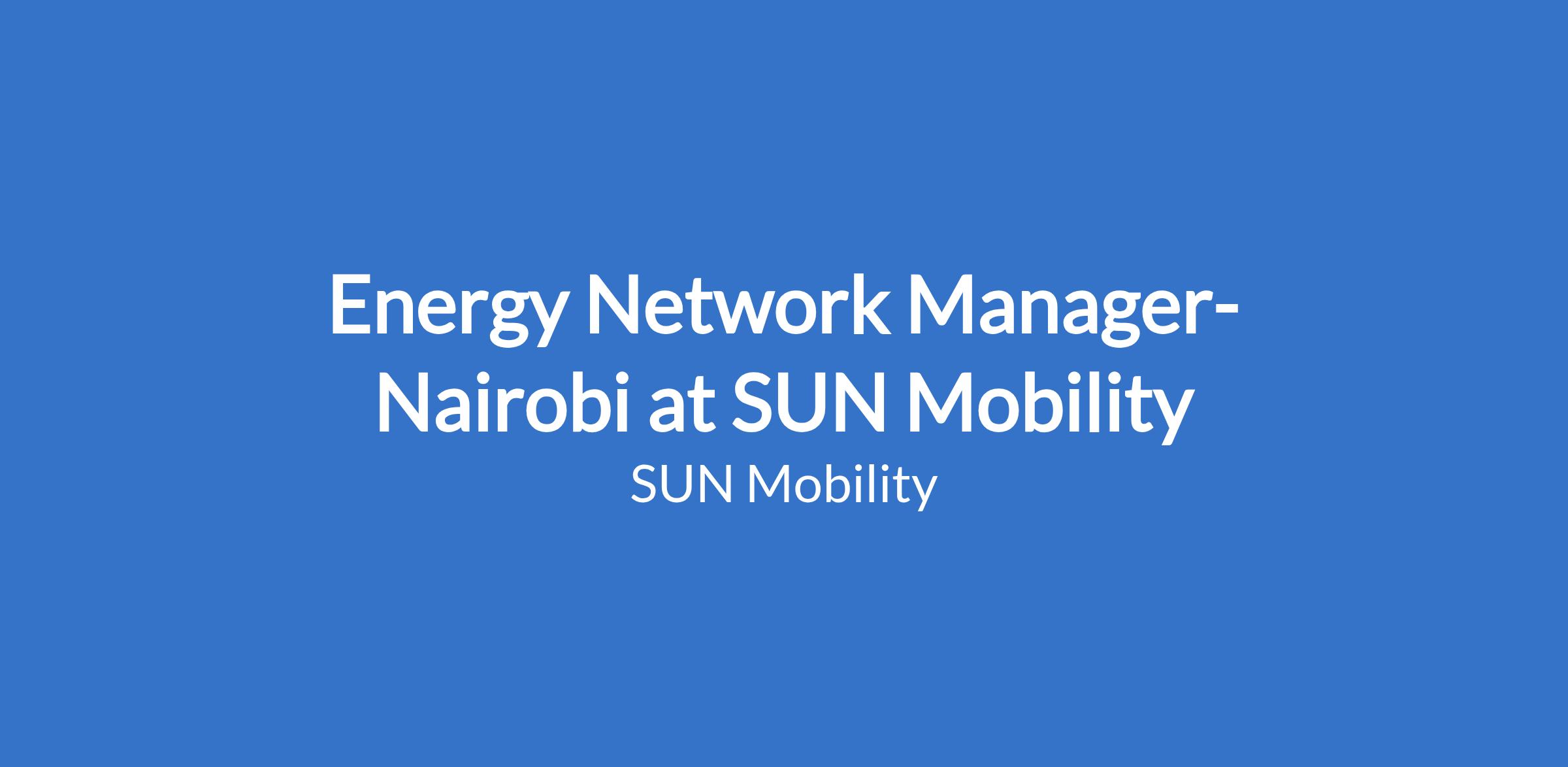 Energy Network Manager- Nairobi at SUN Mobility