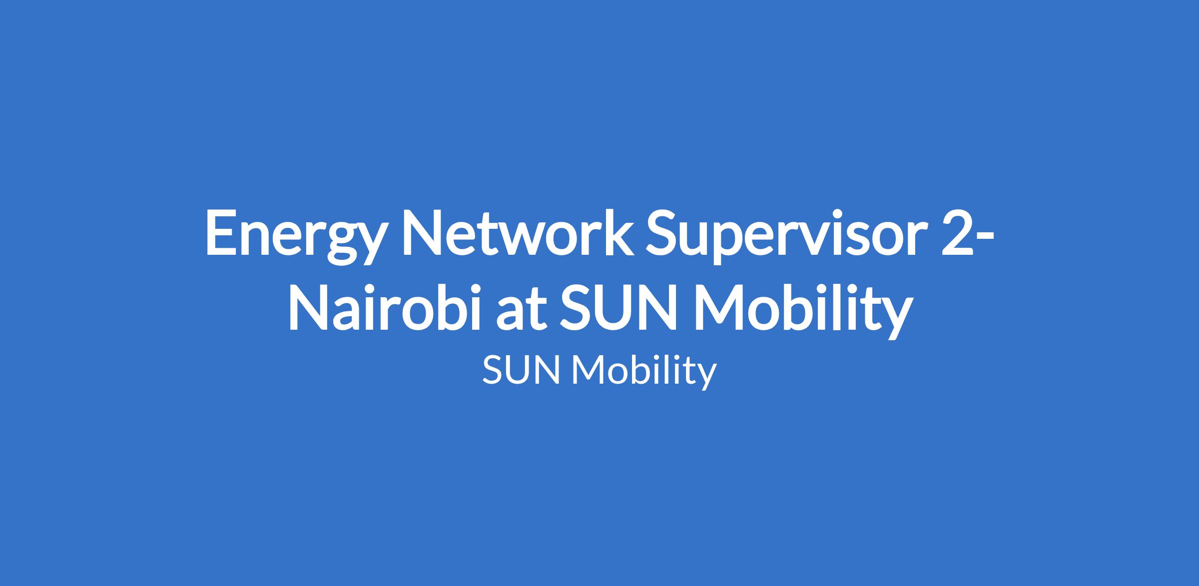 Energy Network Supervisor 2- Nairobi at SUN Mobility