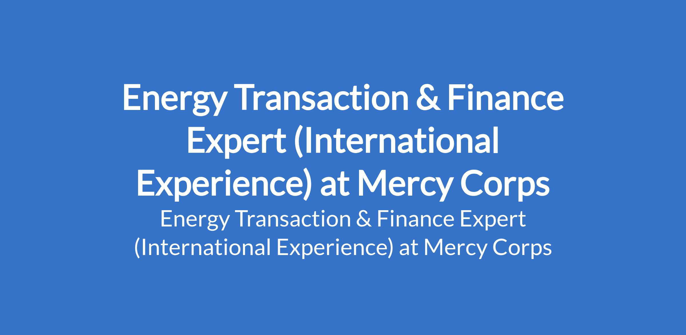 Mercy Corps is recruiting to fill the position of: Energy Transaction & Finance Expert (International Experience). Interested candidates should possess a Masters Degree in Energy Economics, Finance, Accounting, Business, or related fields with at least 8 years of professional experience in RE projects, at least 3 of which in power sector regulation.
