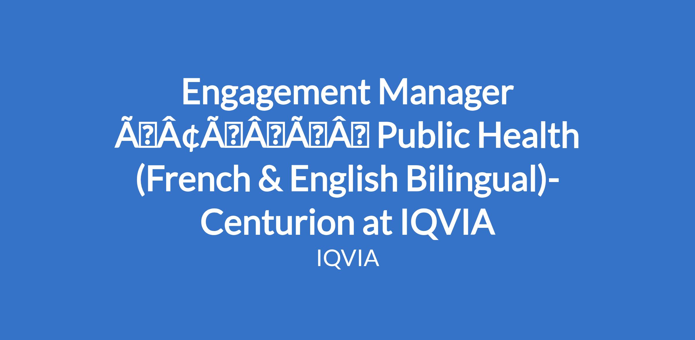 Engagement Manager âÃÂàPublic Health (French & English Bilingual)- Centurion at IQVIA
