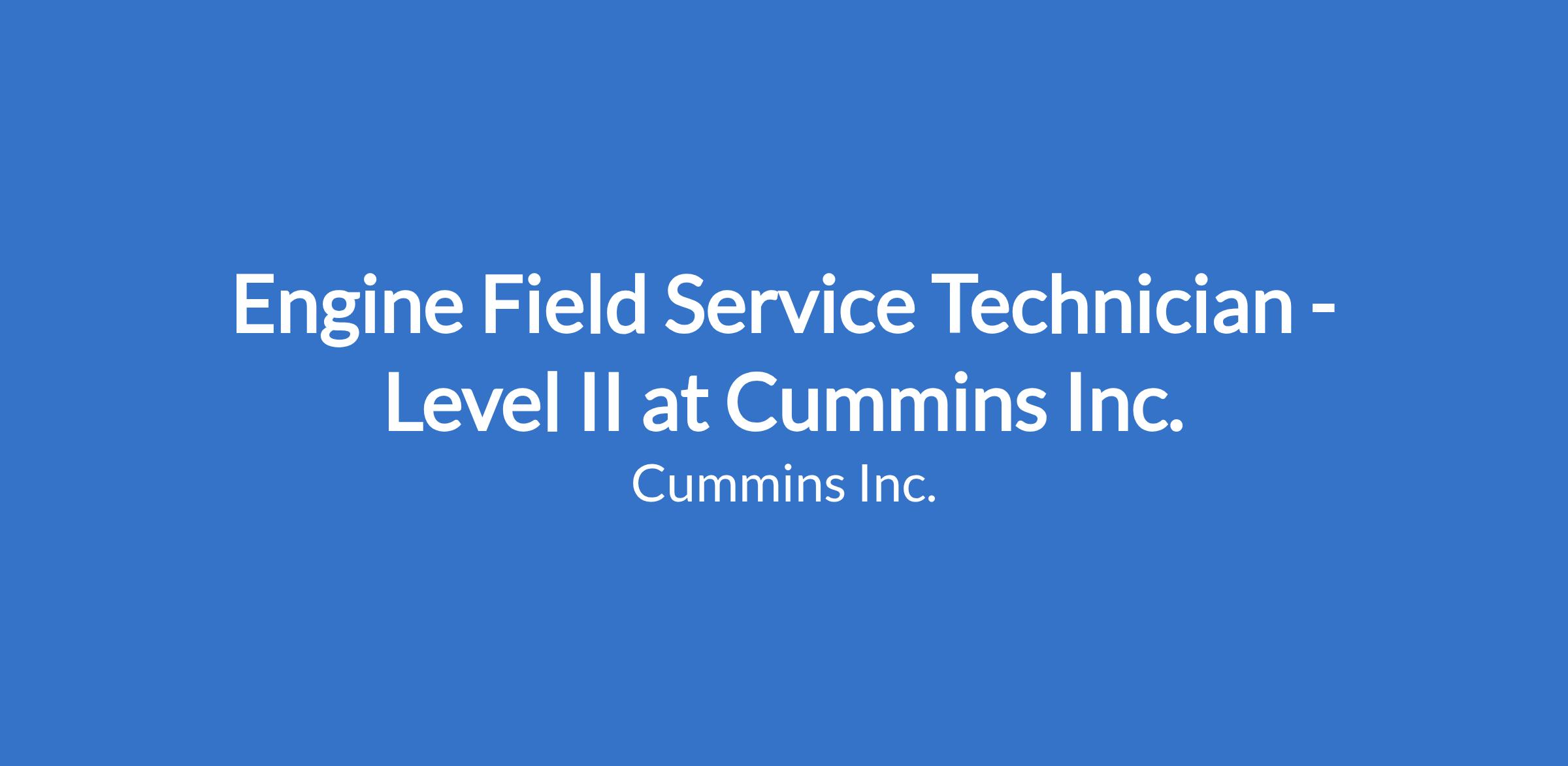 Engine Field Service Technician - Level II at Cummins Inc.