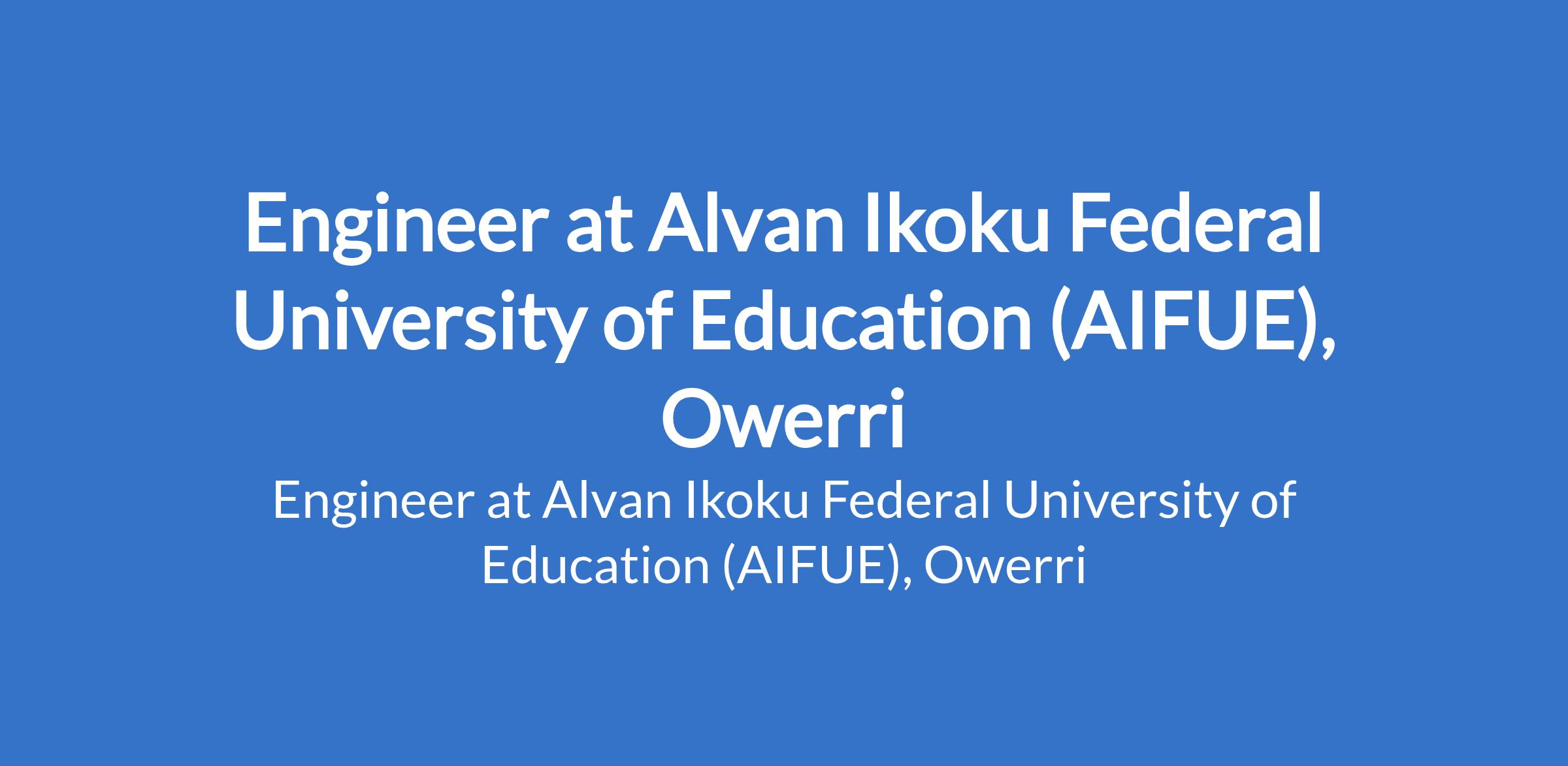 Alvan Ikoku Federal University of Education (AIFUE), Owerri invites applications from suitably qualified candidates for the position of: Engineer. The position is located in Imo State. Interested candidates should possess a B.Eng. / B.Tech. in relevant Engineering disciplines.