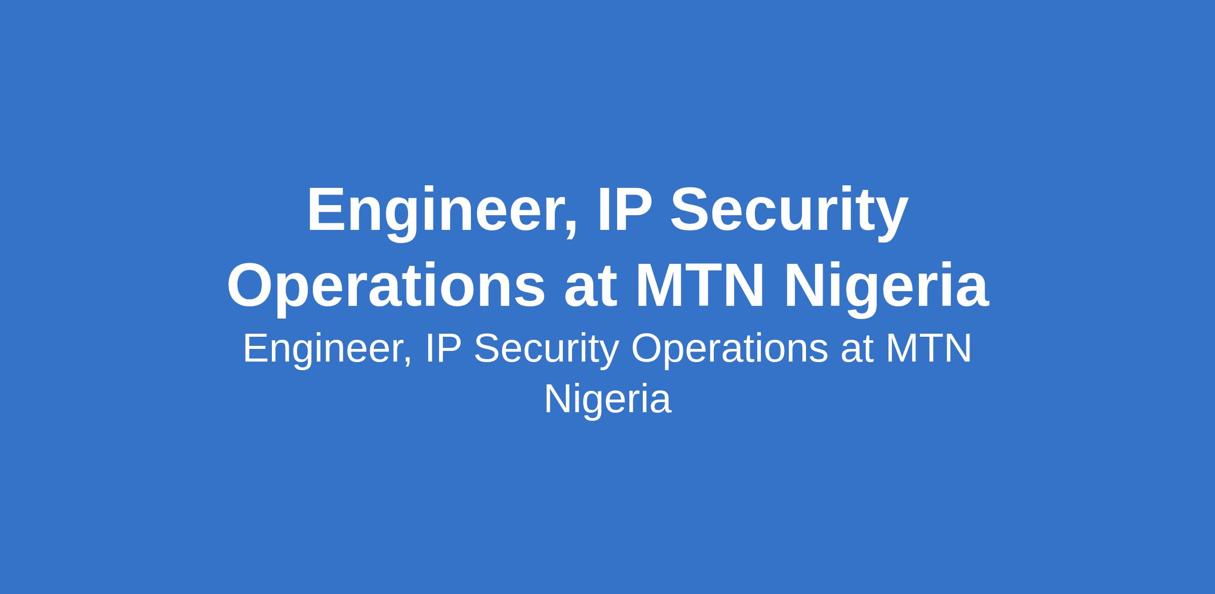 MTN Nigeria is recruiting to fill the position of: Engineer, IP Security Operations. The position is located in Ikoyi, Lagos State. Interested candidates should possess a First Degree in Computer Science or Engineering, Information Technology or Cybersecurity, Electrical Engineering, or any related fields with 3 7 years experience.