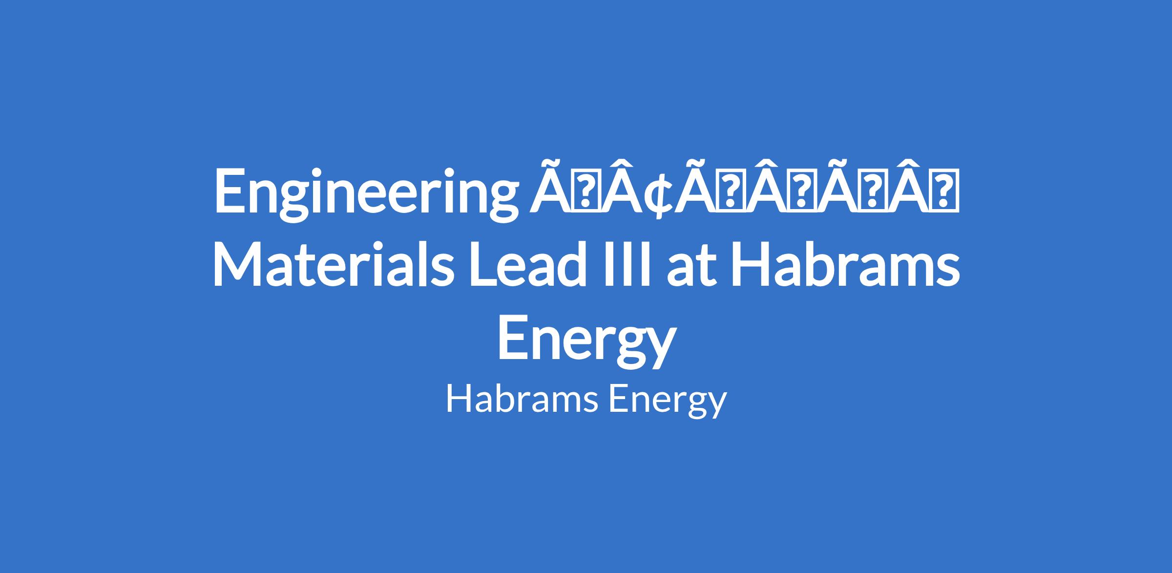 Engineering âÃÂàMaterials Lead III at Habrams Energy