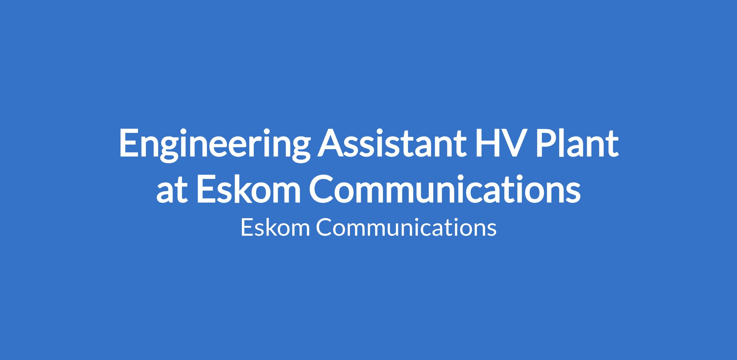 Area of specialization: To provide a safe, organised and planned first line maintenance service within the Grid in respect to HV Plant and associated equipment. Position/Task Grade: T10 Department: HV Plant Business Unit: Northern Grid Location: Burghersfort (Leseding Substation)