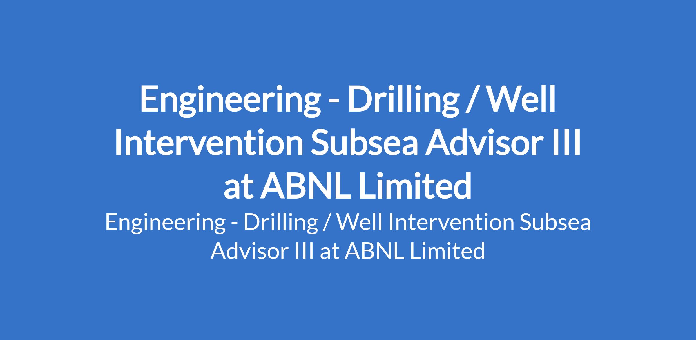 ABNL Limited is recruiting to fill the position of: Engineering - Drilling / Well Intervention Subsea Advisor III. The position is located in Seplat House, Lagos State. Interested candidates should possess relevant qualifications with previous experience within a closely related position.