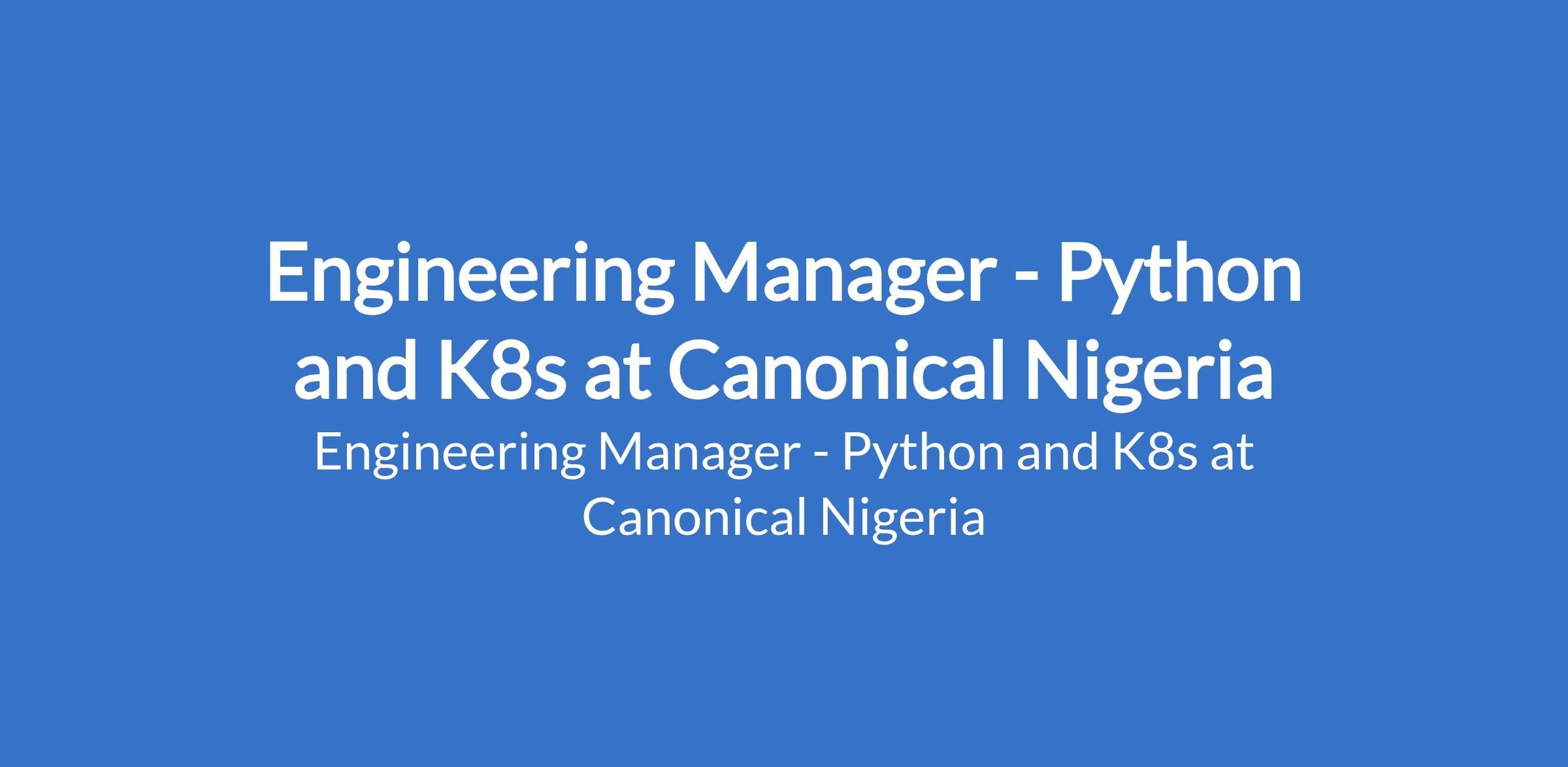 Engineering Manager - Python and K8s at Canonical Nigeria