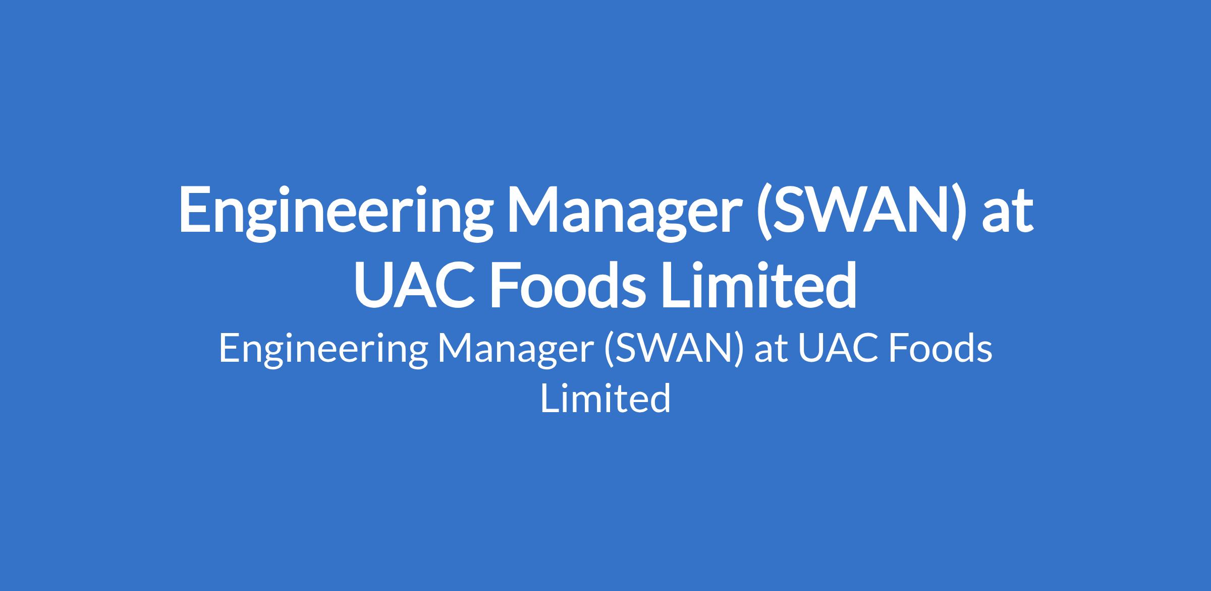 UAC Foods Limited is recruiting to fill the position of: Engineering Manager (SWAN). The position is located in Plateau State. Interested candidates should possess an HND or BSc. equivalent in Engineering or a related field with a minimum of 10 Years experience in engineering and maintenance roles within FMCG or food manufacturing, with at least 3 years in a leadership position.