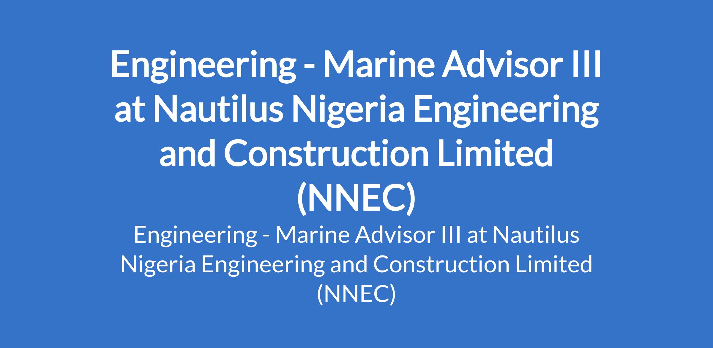 Nautilus Nigeria Engineering and Construction Limited (NNEC) is recruiting to fill the position of: Engineering - Marine Advisor III. The position is located in Akwa Ibom State. Interested candidates should possess a University Degree or Advanced Degree and have led a minimum of 20 (ten) Jack Up rig moves at platform operations.