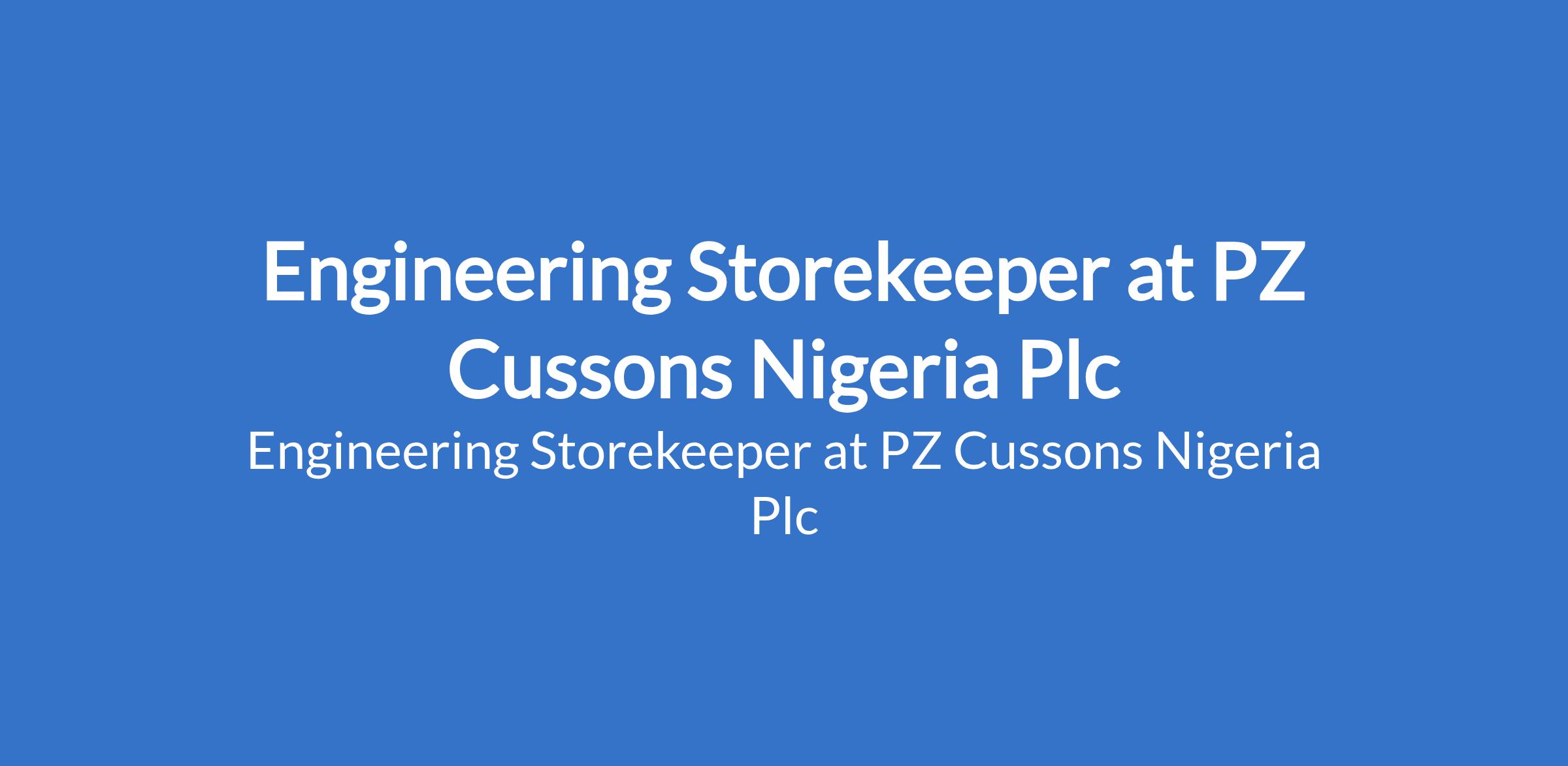 PZ Cussons Nigeria Plc is recruiting to fill the position of: Engineering Storekeeper. The position is located in Ikorodu, Lagos State. Interested candidates should possess an ND / HND / BSc Degree in Electrical & other related Engineering courses with a minimum of 2 years related work experience.