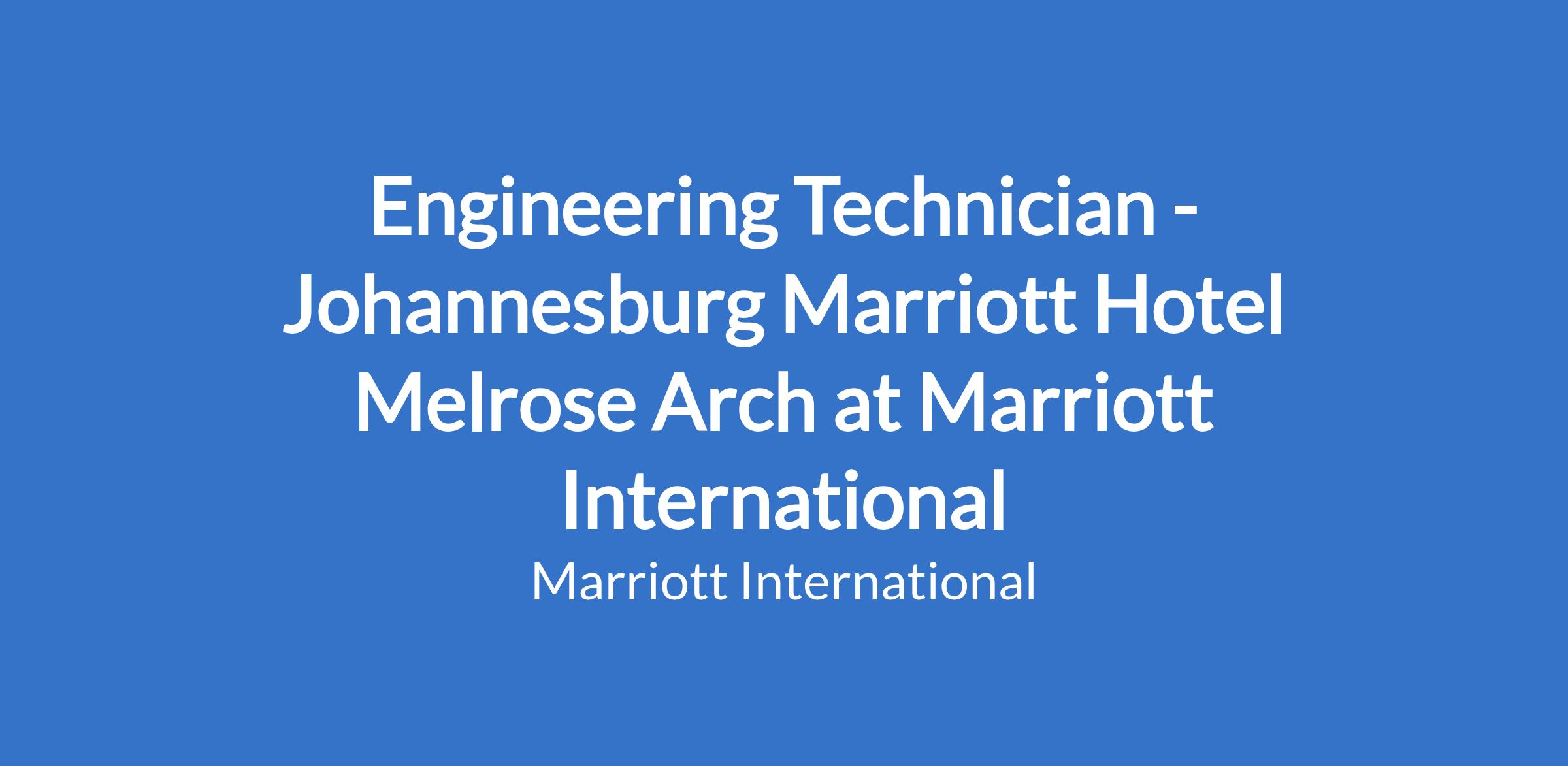 Engineering Technician - Johannesburg Marriott Hotel Melrose Arch at Marriott International