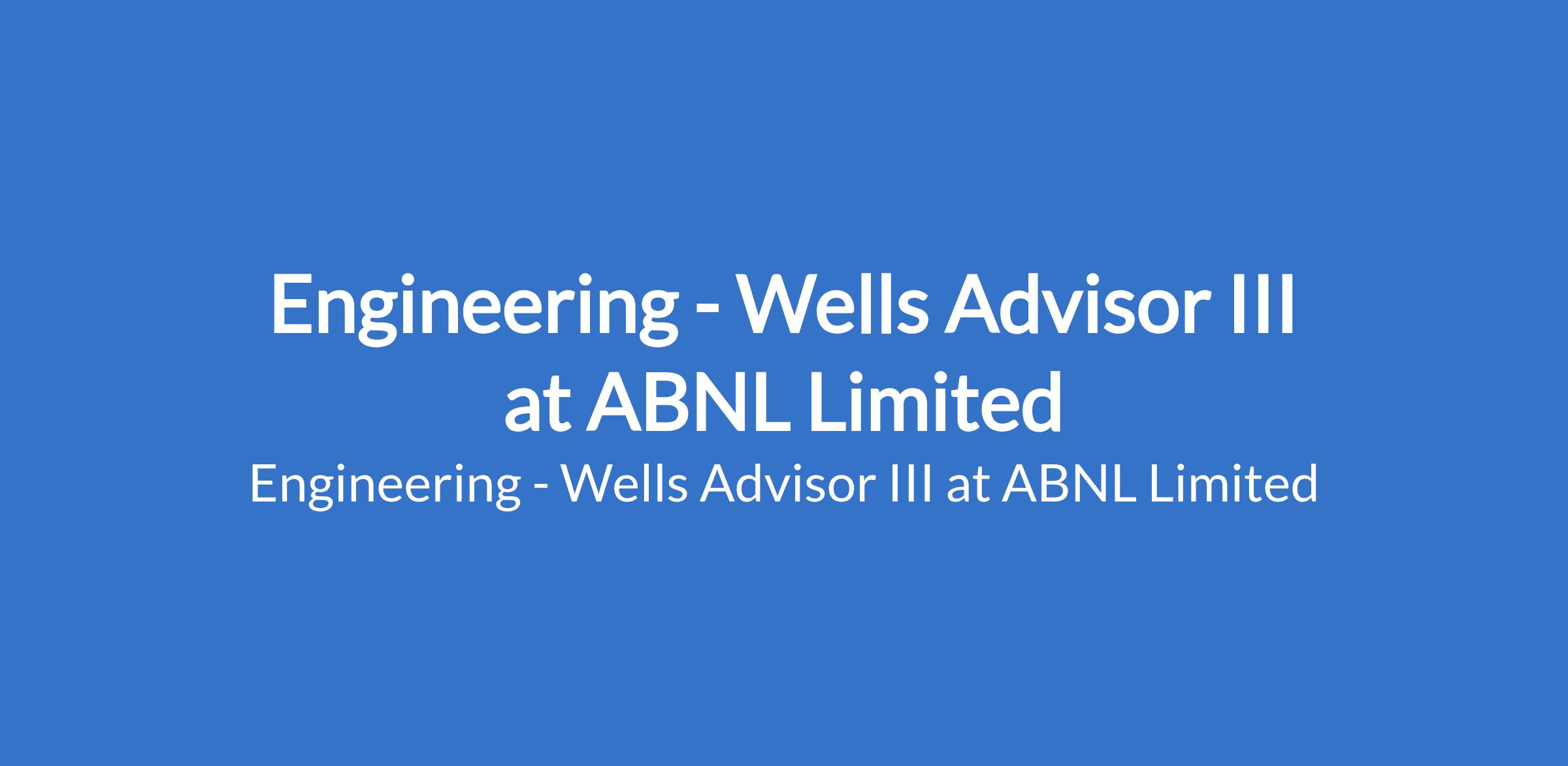 ABNL Limited is recruiting to fill the position of: Engineering - Wells Advisor III. The position is located in Lagos State. Interested candidates should possess a Degree in an Engineering discipline (Mechanical or Civil preferably)with experience in construction site management, preferably familiar with Drilling well site design.