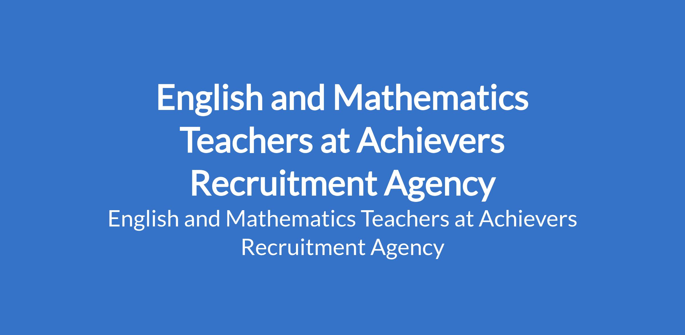 Achievers Recruitment Agency is recruiting to fill the position of: English and Mathematics Teacher. The position is located in Rupokwu / Port Harcourt / Omoku - Rivers State. Salary: N50,000 - N150,000 monthly. Interested candidates should possess an NCE, B.Ed., or equivalent qualification with 2-3 years experience.