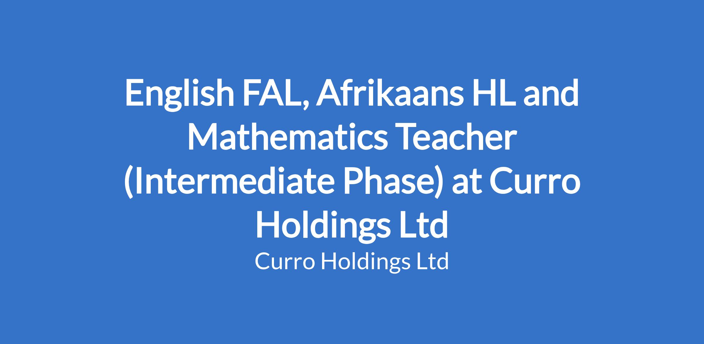 English FAL, Afrikaans HL and Mathematics Teacher (Intermediate Phase) at Curro Holdings Ltd