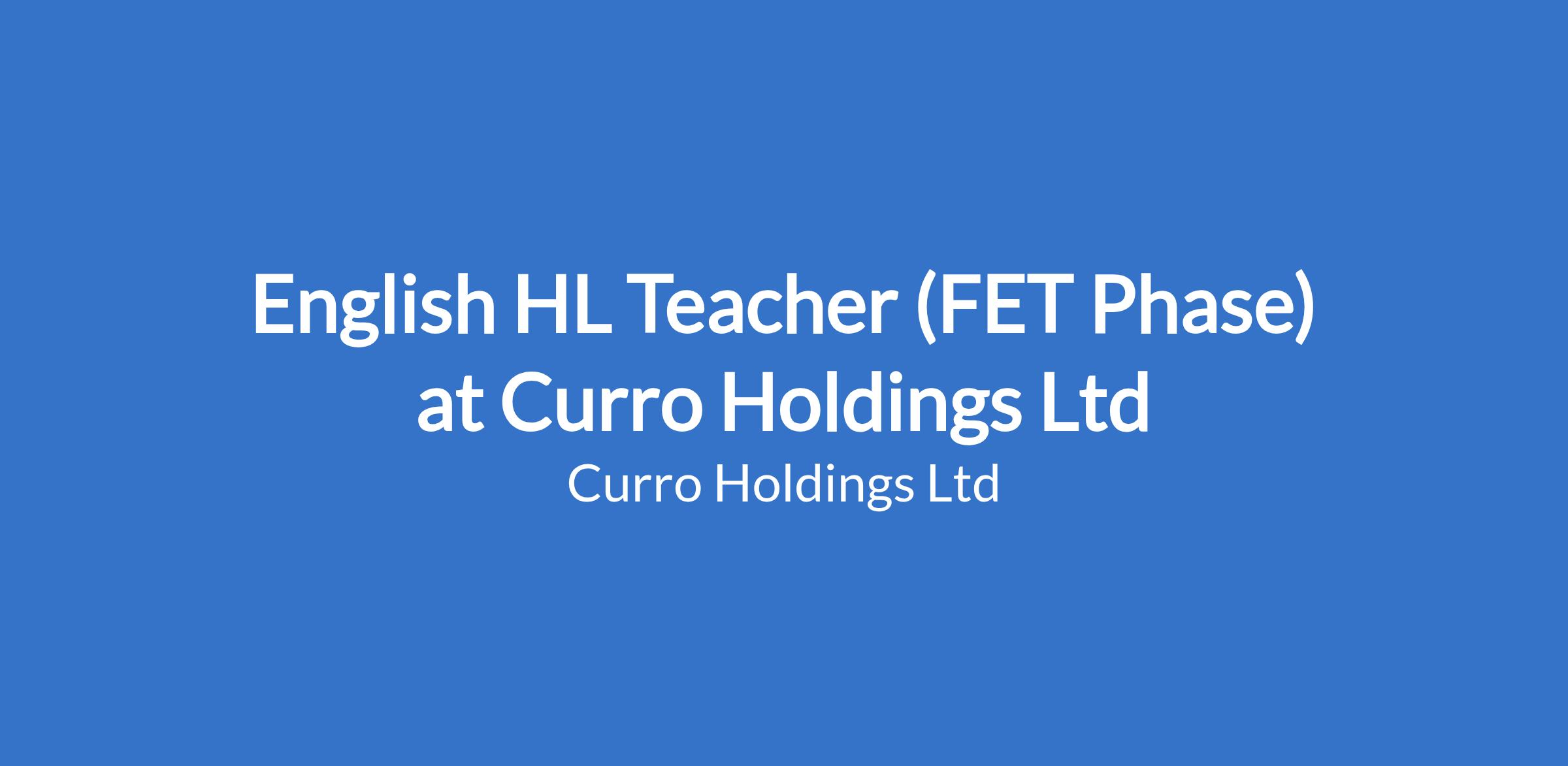 English HL Teacher (FET Phase) at Curro Holdings Ltd