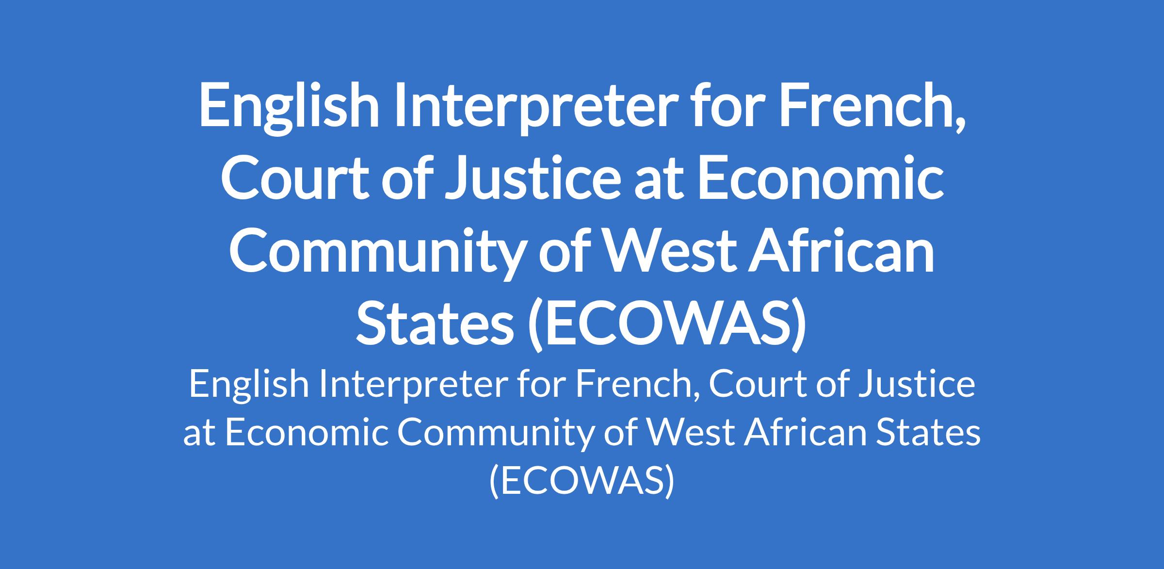 Economic Community of West African States (ECOWAS) is recruiting to fill the position of: English Interpreter for French, Court of Justice. The position is located in Abuja. Salary: USD 104.330.42 annually. Interested candidates should possess a Master and diploma or certificate in interpretation of conferences of a recognized institution. OR University Degree in interpretation of conferences of a recognized institution with 10 years of experience in Interpretation (four of which must have been as an effective interpreter).