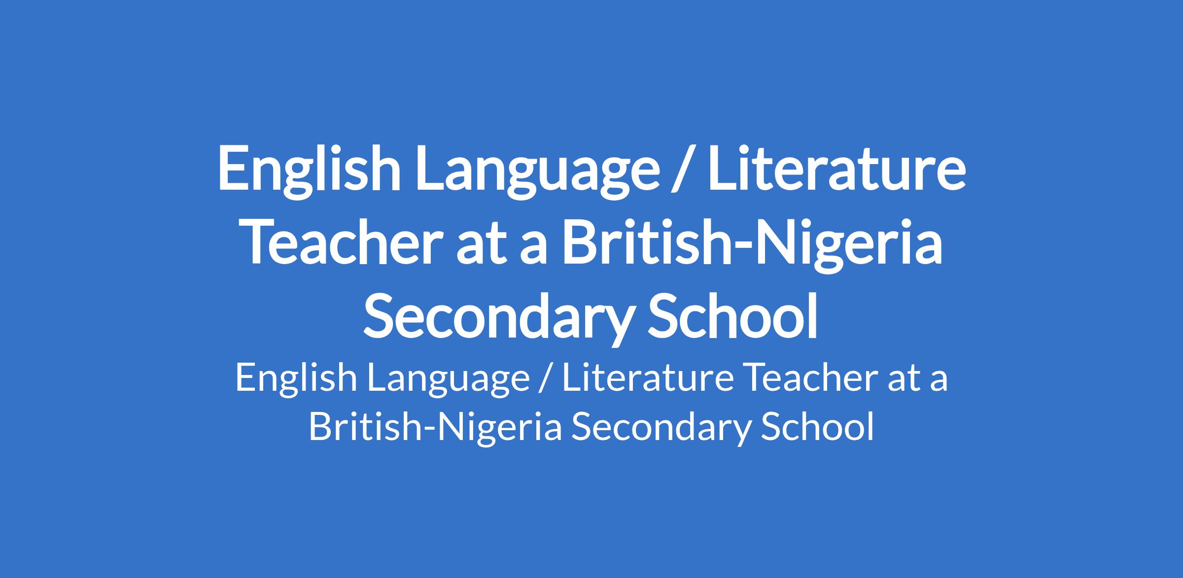 English Language / Literature Teacher at a British-Nigeria Secondary School