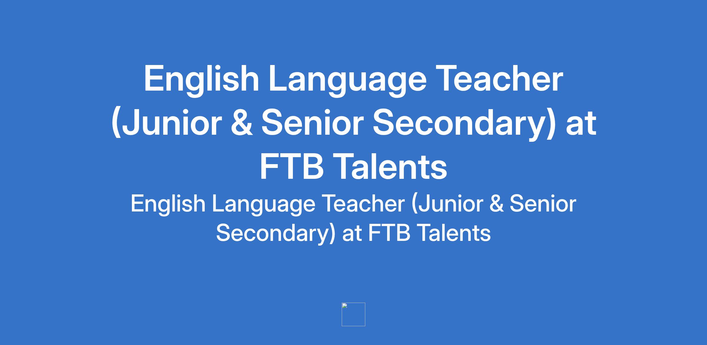 FTB Talents is recruiting to fill the position of: English Language Teacher (Junior & Senior Secondary). The position is located in Awka, Anambra State. Salary: N100,000 - N120,000 monthly. Interested candidates should possess a B.A in English or B.Ed in English; TRCN Registration Mandatory with 57 years teaching experience.