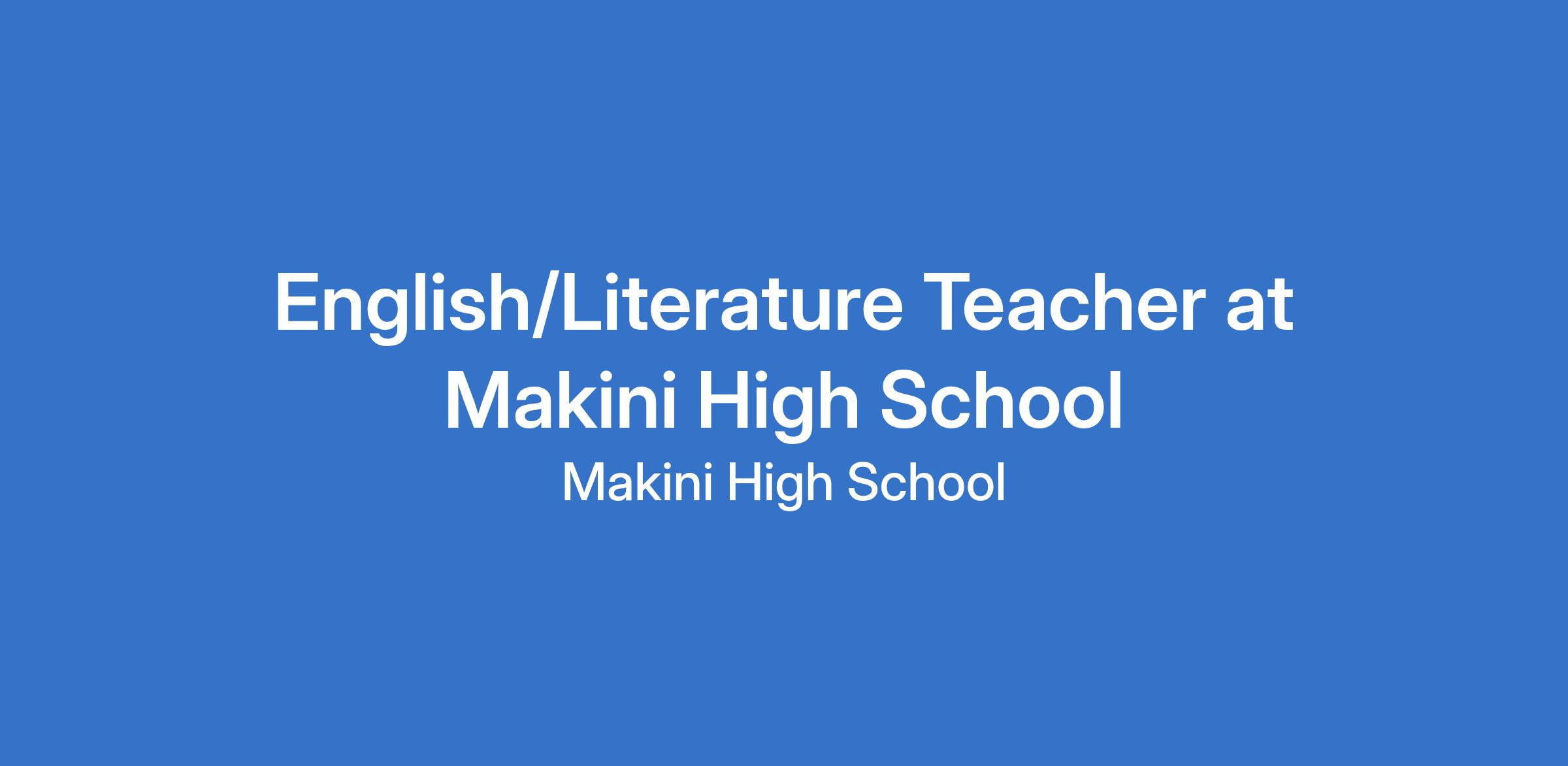 Makini School Cambridge Curriculum is seeking a dynamic and experienced English/Literature Teacher with GP. The Teacher will teach across Key Stages 3 & 4. The successful candidate should also be able to actively encourage and facilitate the formation of each student's moral character, unique skills, capacities and talents through continuous improvement in ensuring quality education.