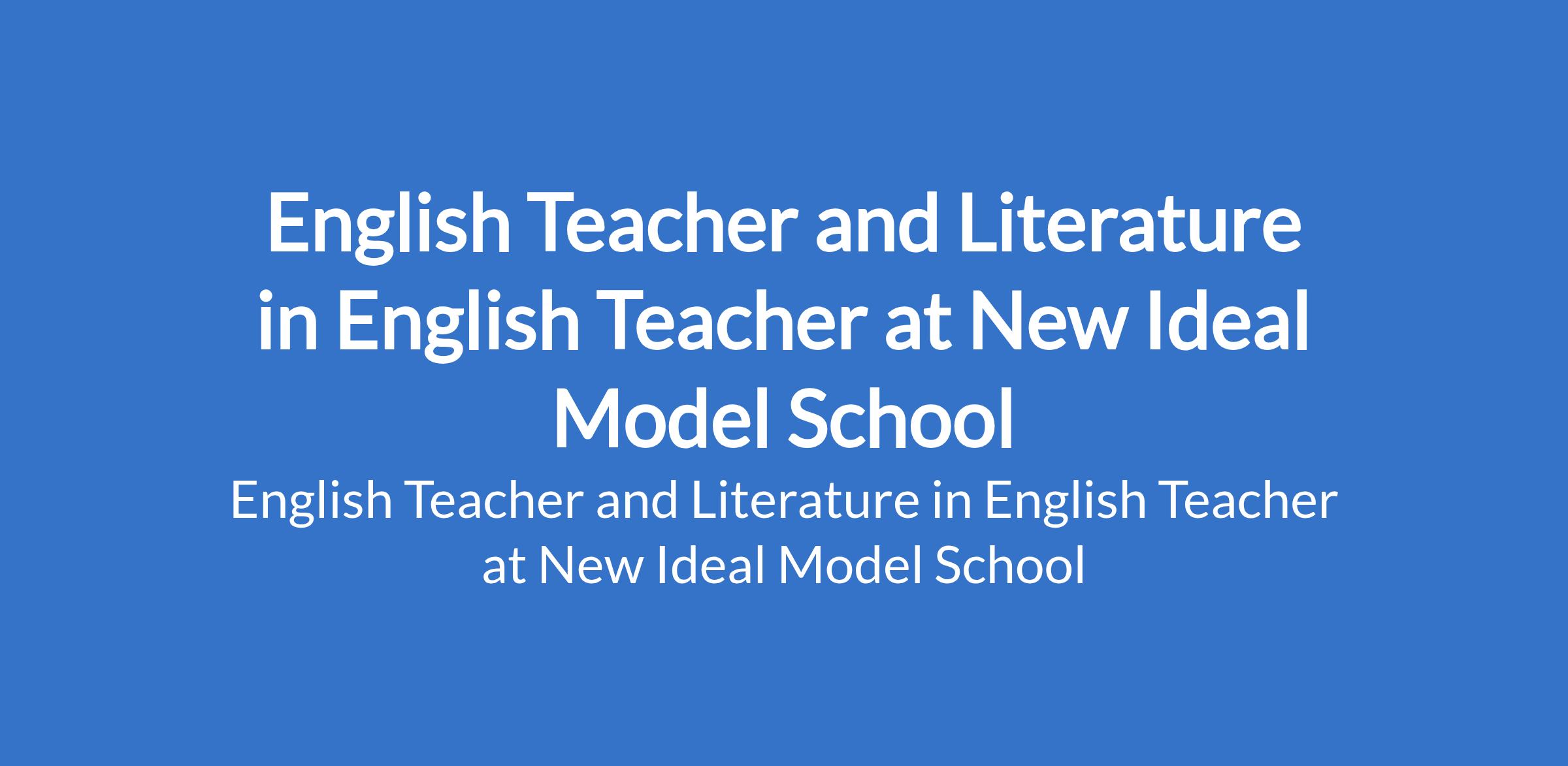 English Teacher and Literature in English Teacher at New Ideal Model School