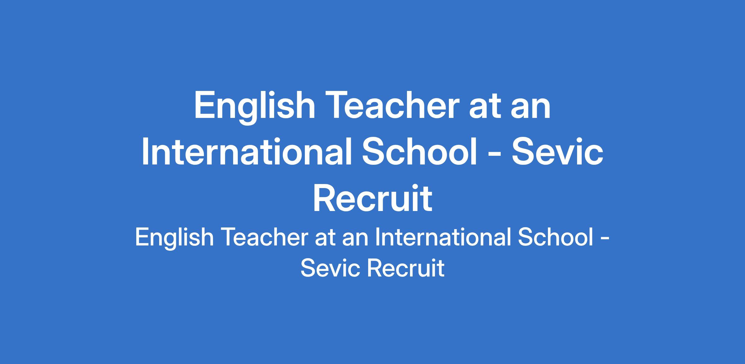 English Teacher at an International School - Sevic Recruit