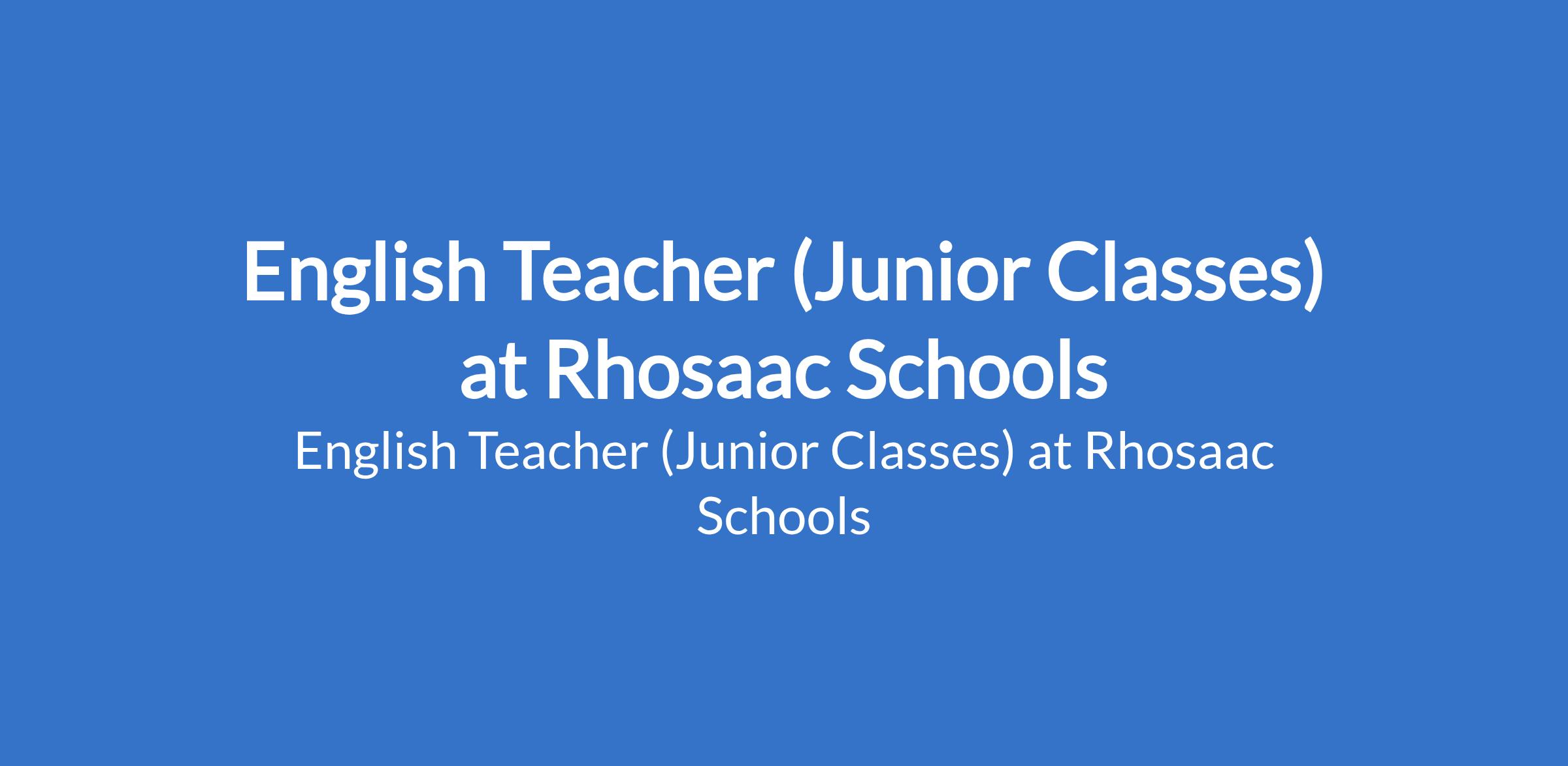 Rhosaac Schools is recruiting to fill the position of: English Teacher (Junior Classes). The position is located in Aboru, Lagos State. Interested candidates should possess a minimum of an NCE / OND / Bachelor's Degree in a relevant field with experience.