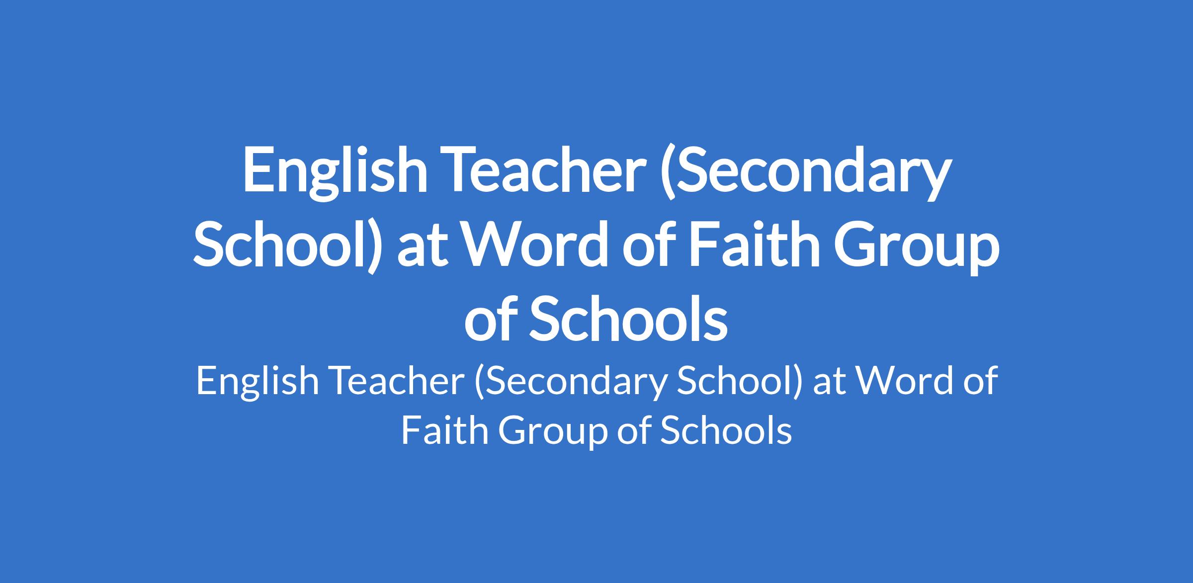 Word of Faith Group of Schools is recruiting to fill the position of: English Teacher (Secondary School). The position is located in Abuja. Interested candidates should possess a B.Ed or relevant qualification in Education and must be duly certified by TRCN.