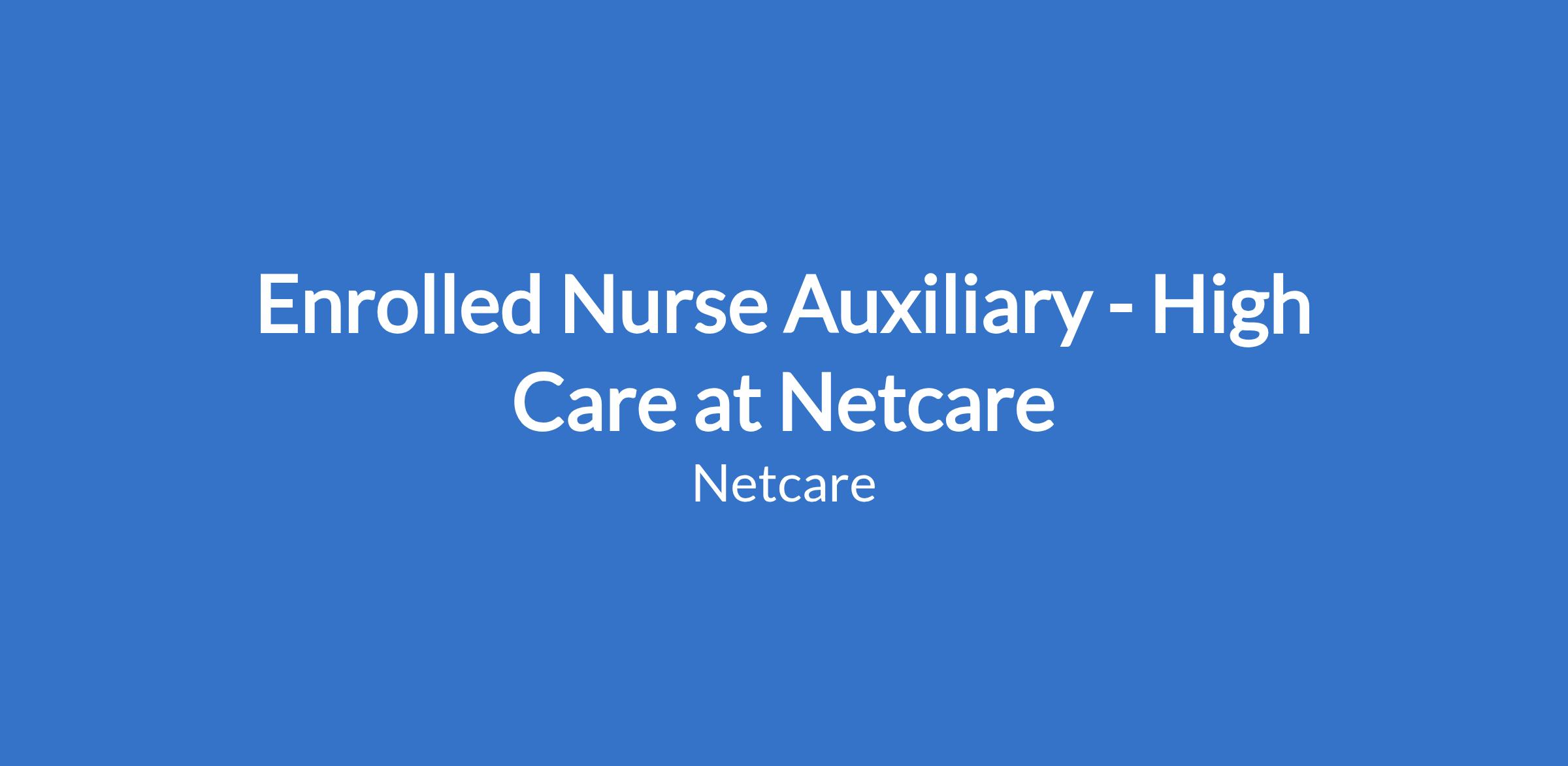 Enrolled Nurse Auxiliary - High Care at Netcare