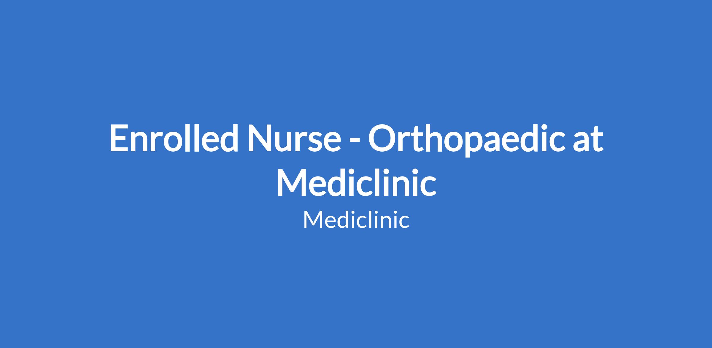 Enrolled Nurse - Orthopaedic at Mediclinic
