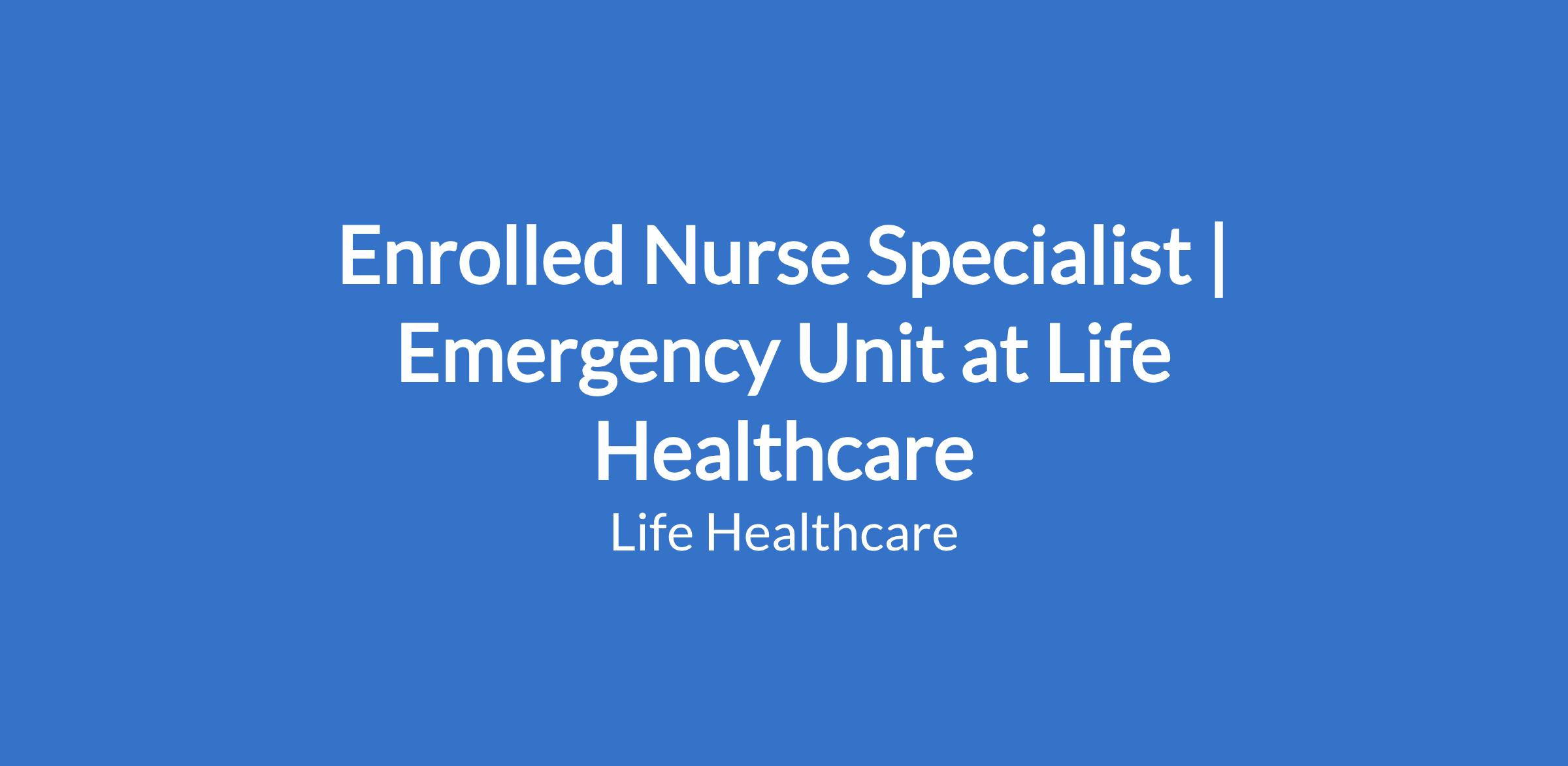 Enrolled Nurse Specialist | Emergency Unit at Life Healthcare
